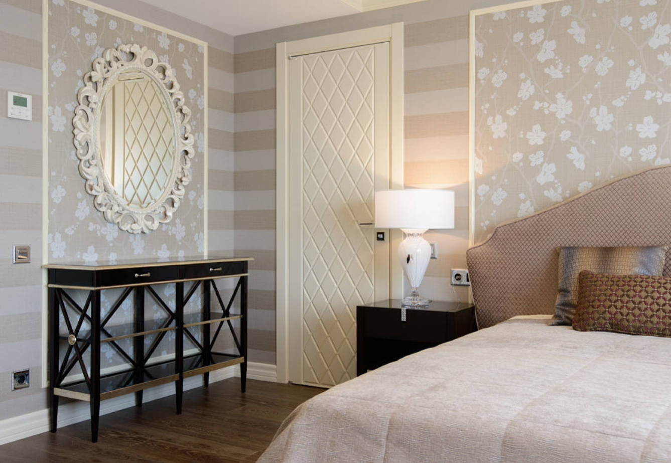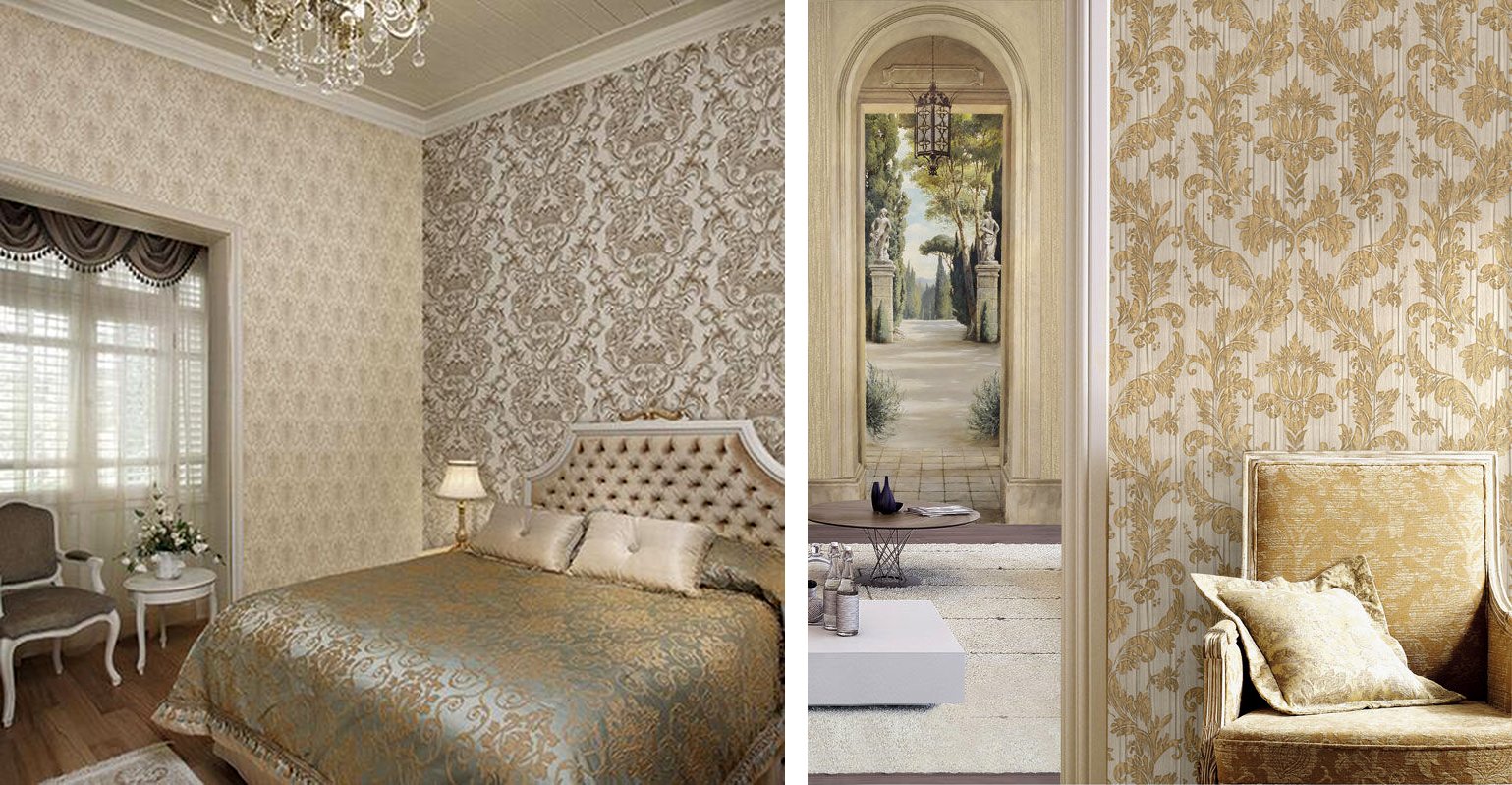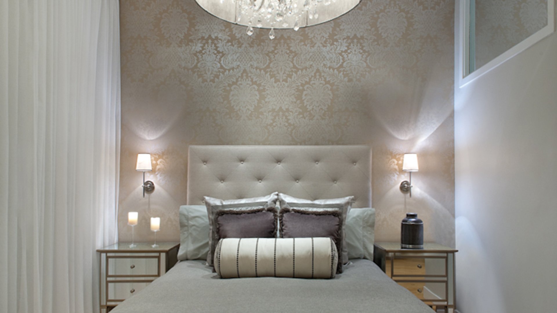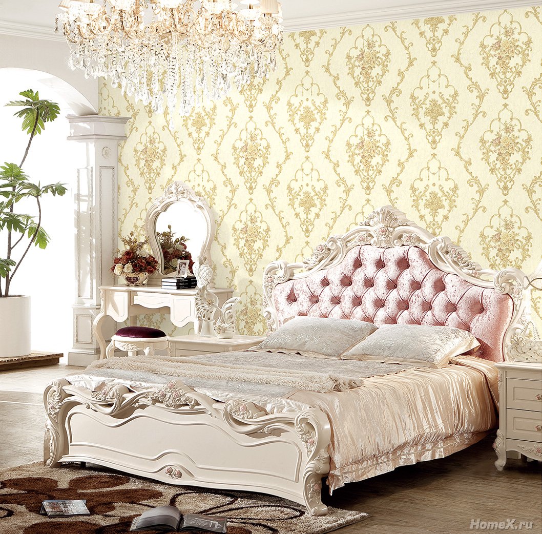 Варианты спальни с обоями Дамаск в стиле Минимализм