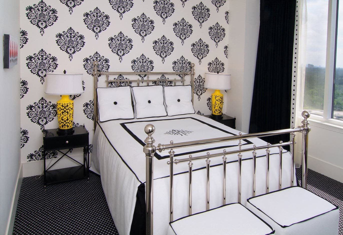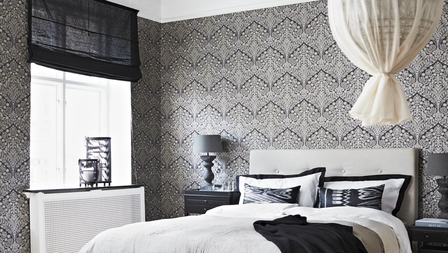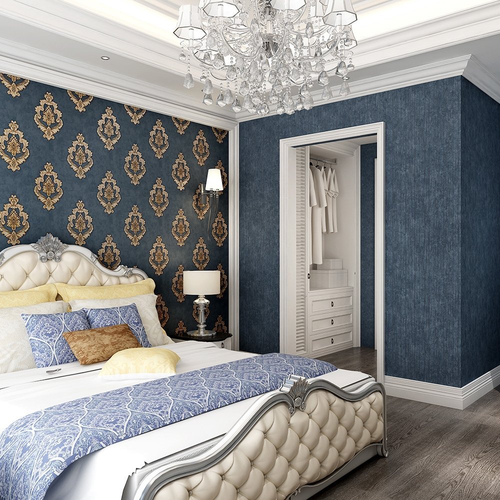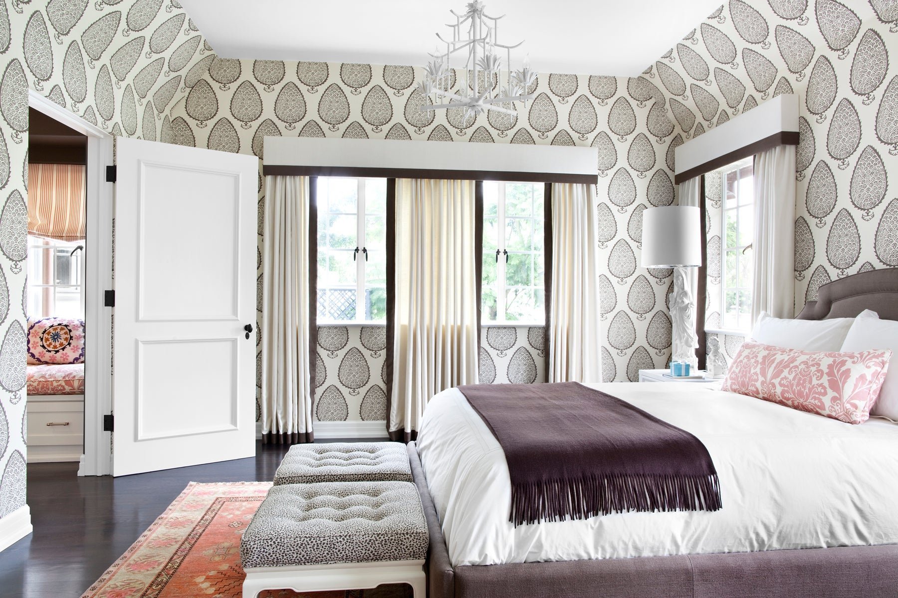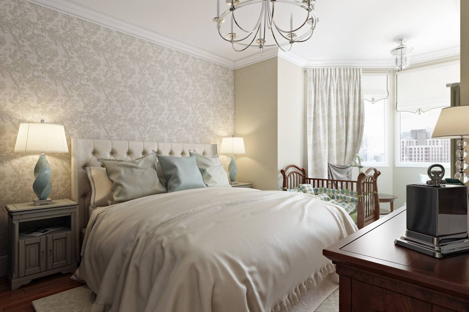 Варианты спальни с обоями Дамаск в стиле Минимализм