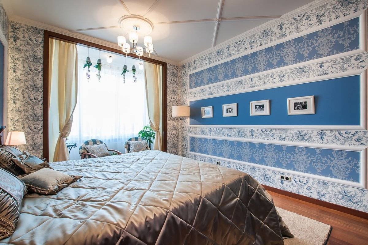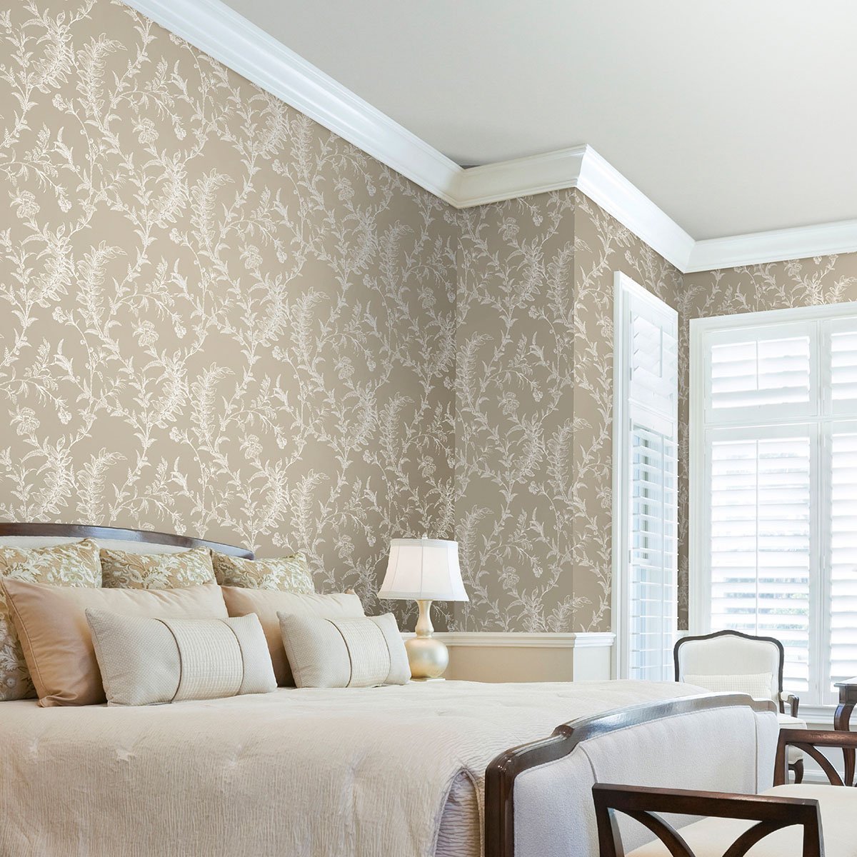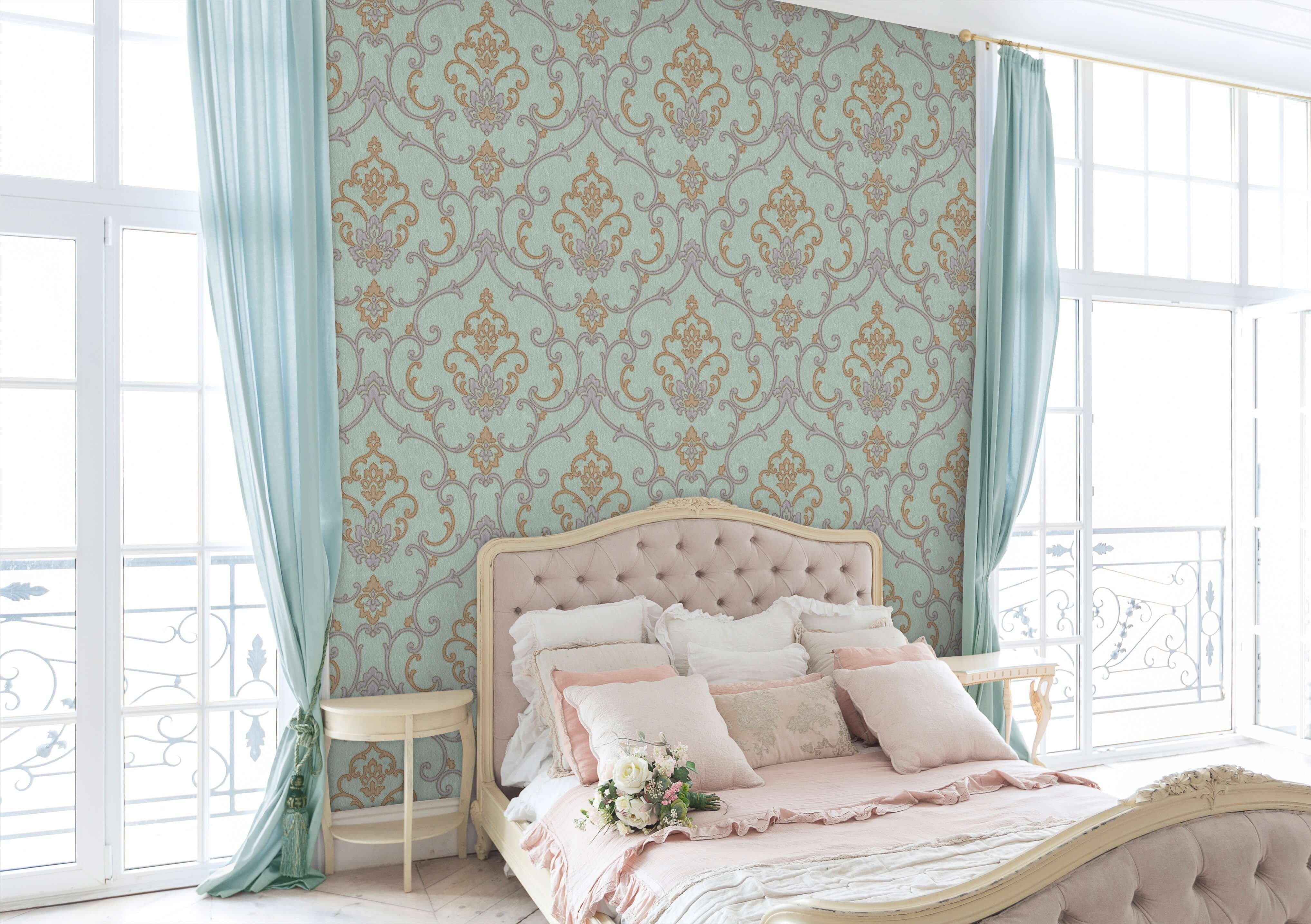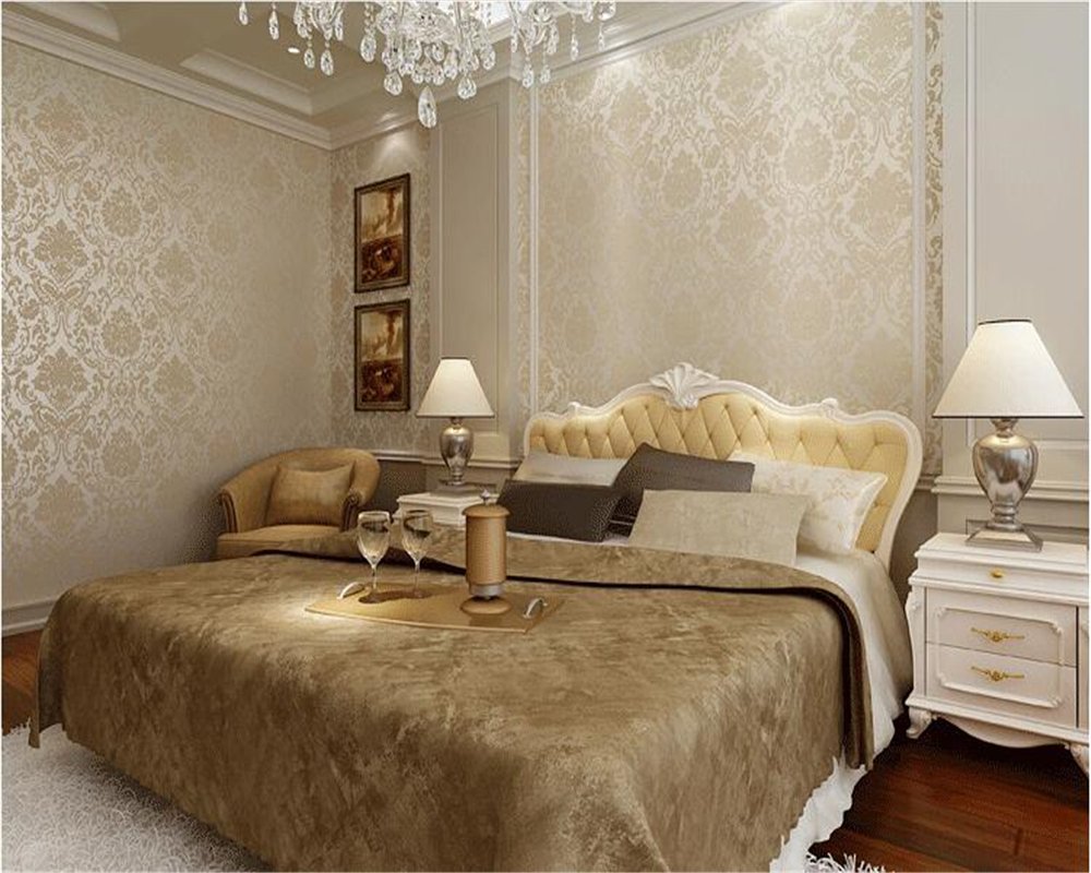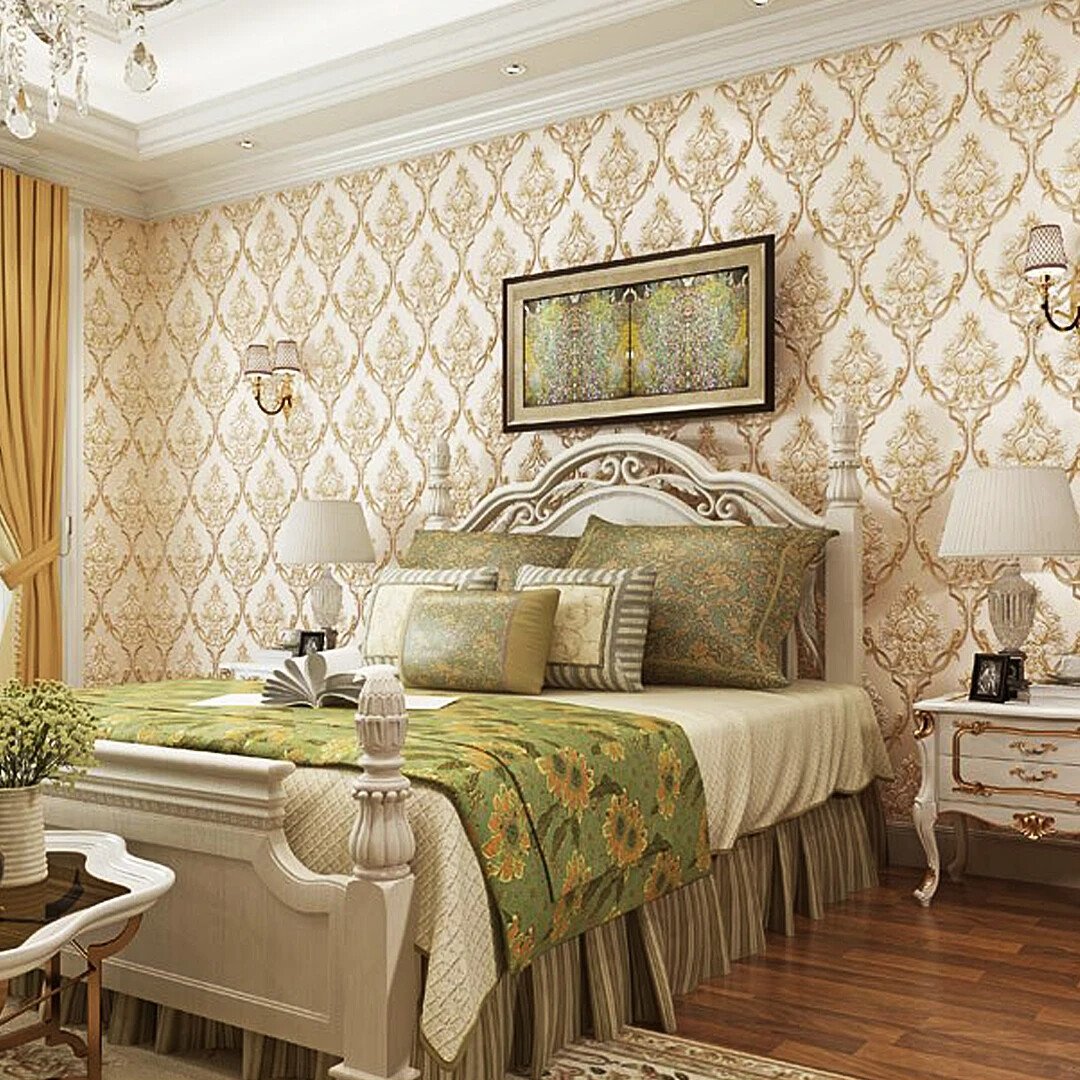 Варианты спальни с обоями Дамаск в стиле Минимализм