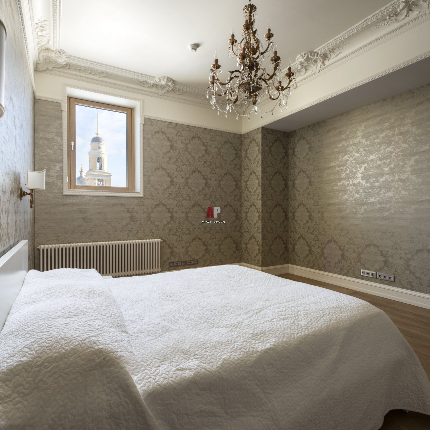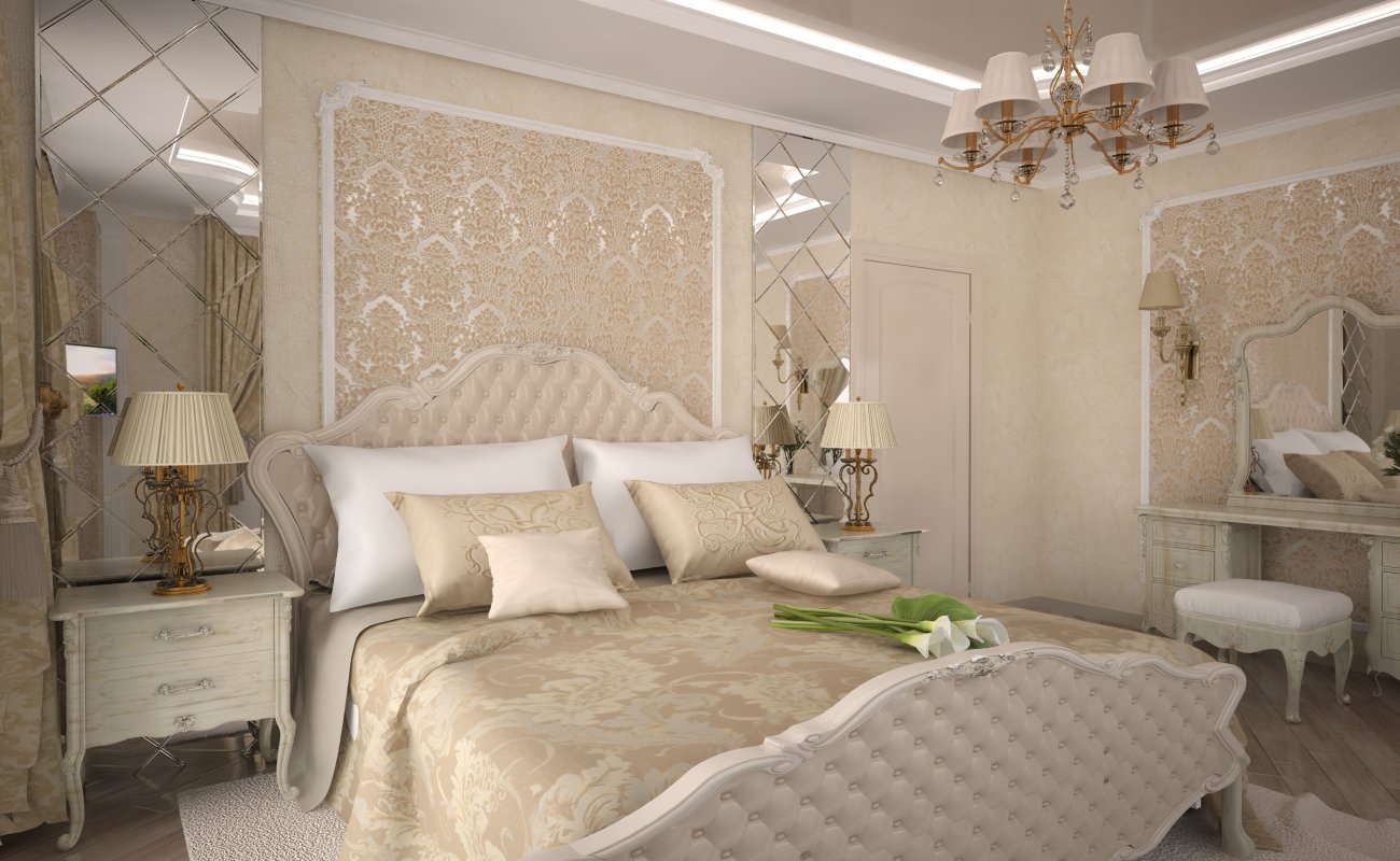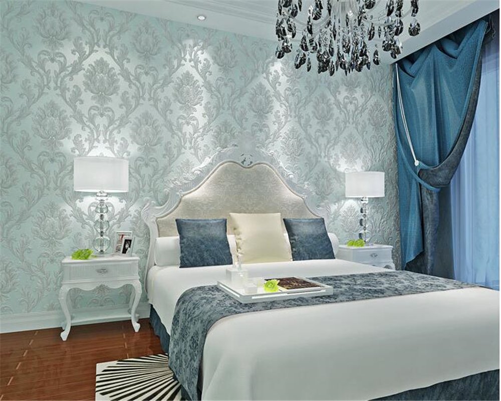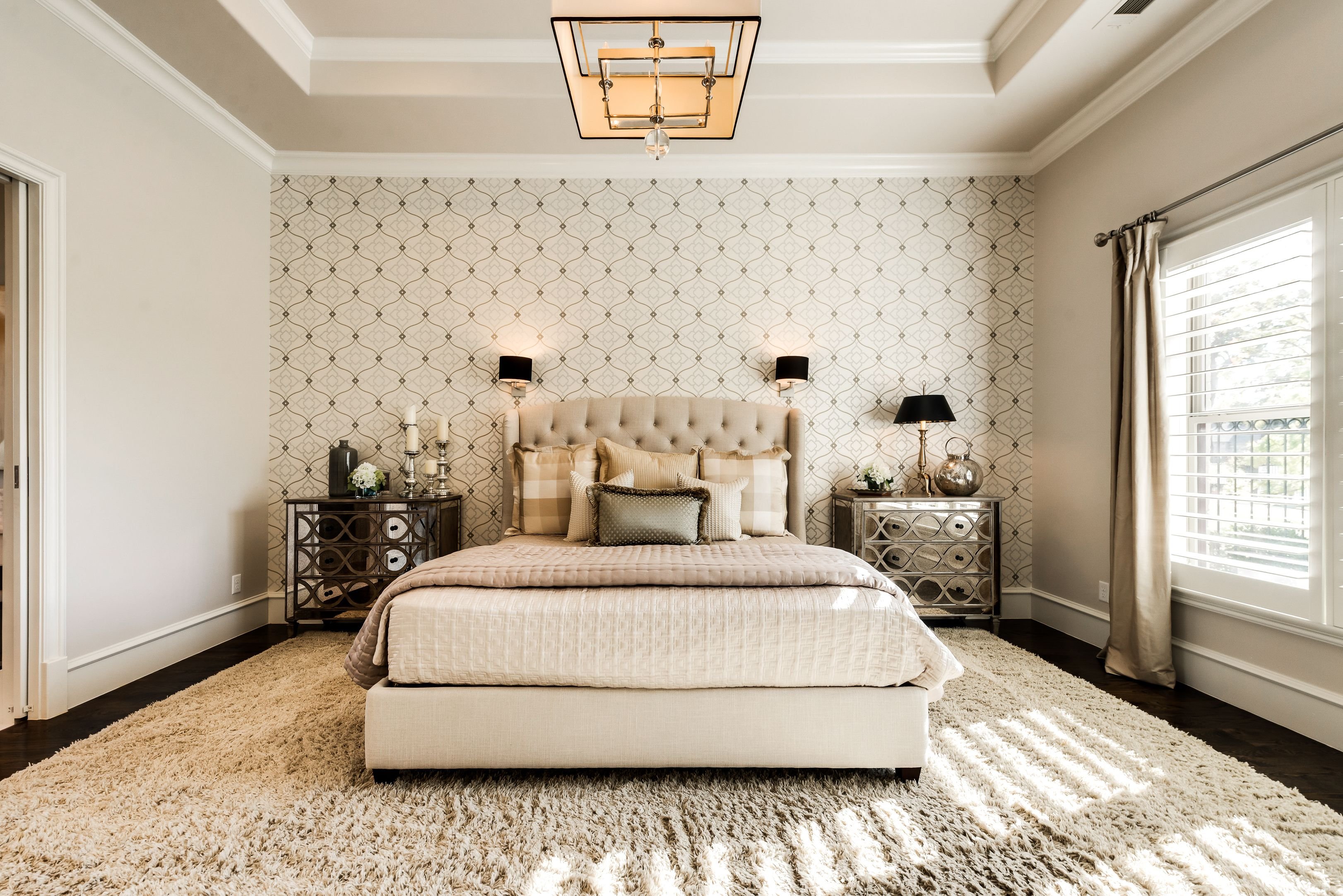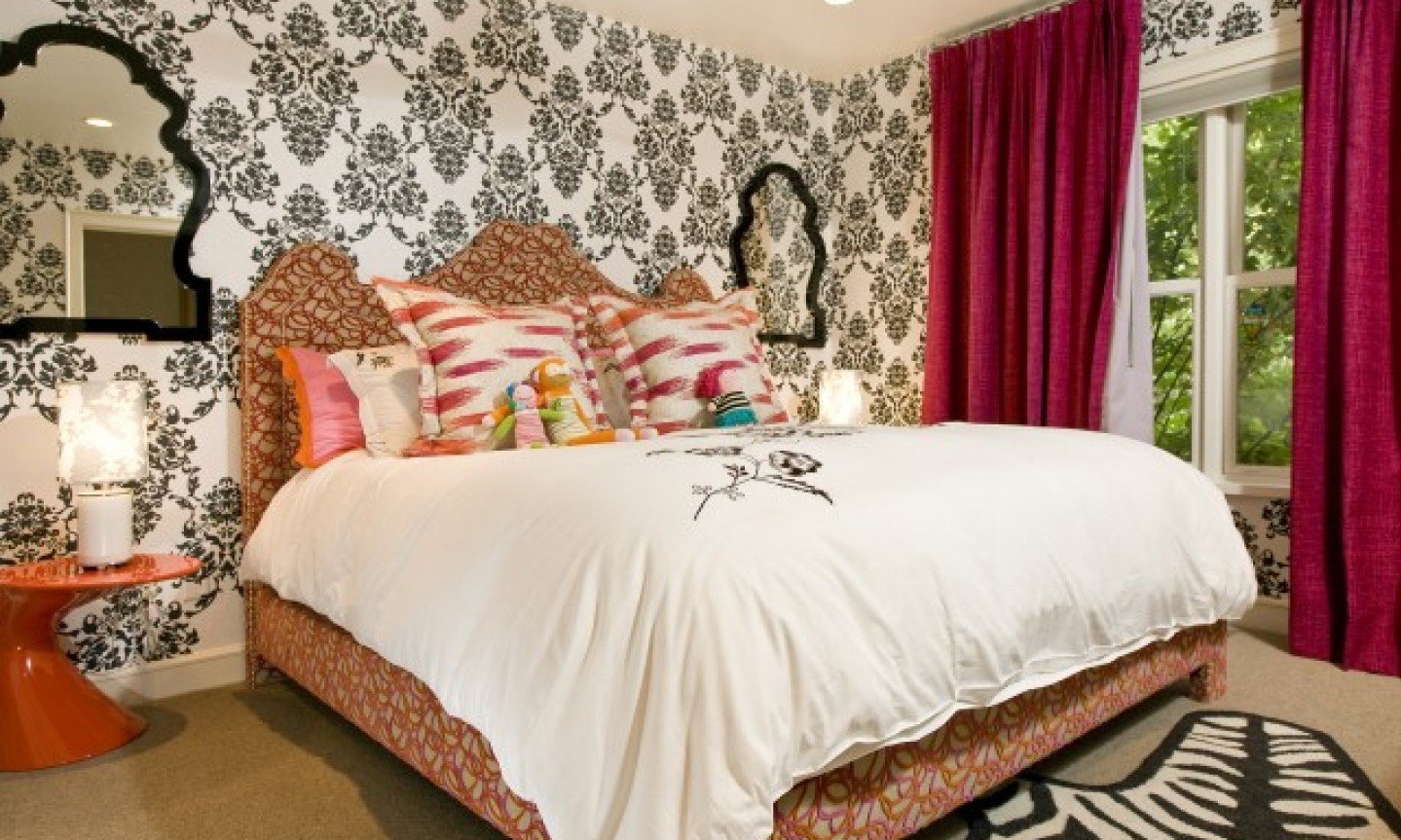 Варианты спальни с обоями Дамаск в стиле Минимализм