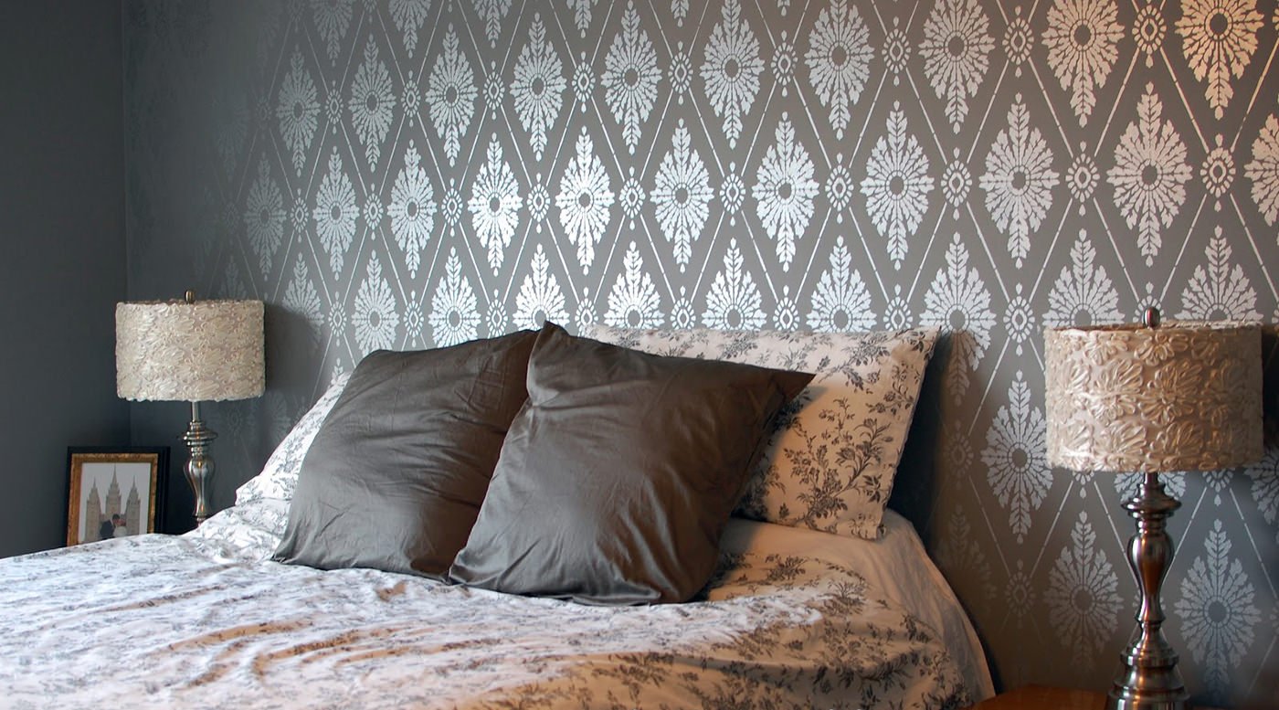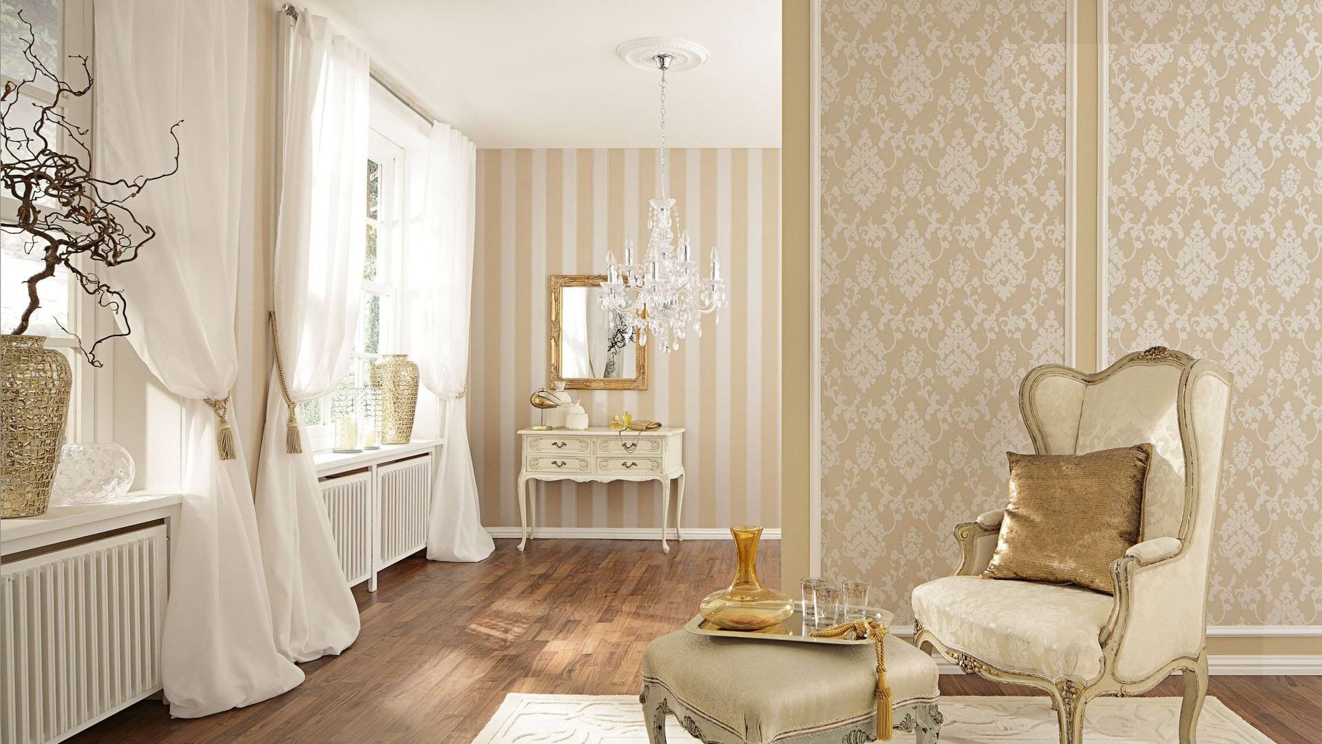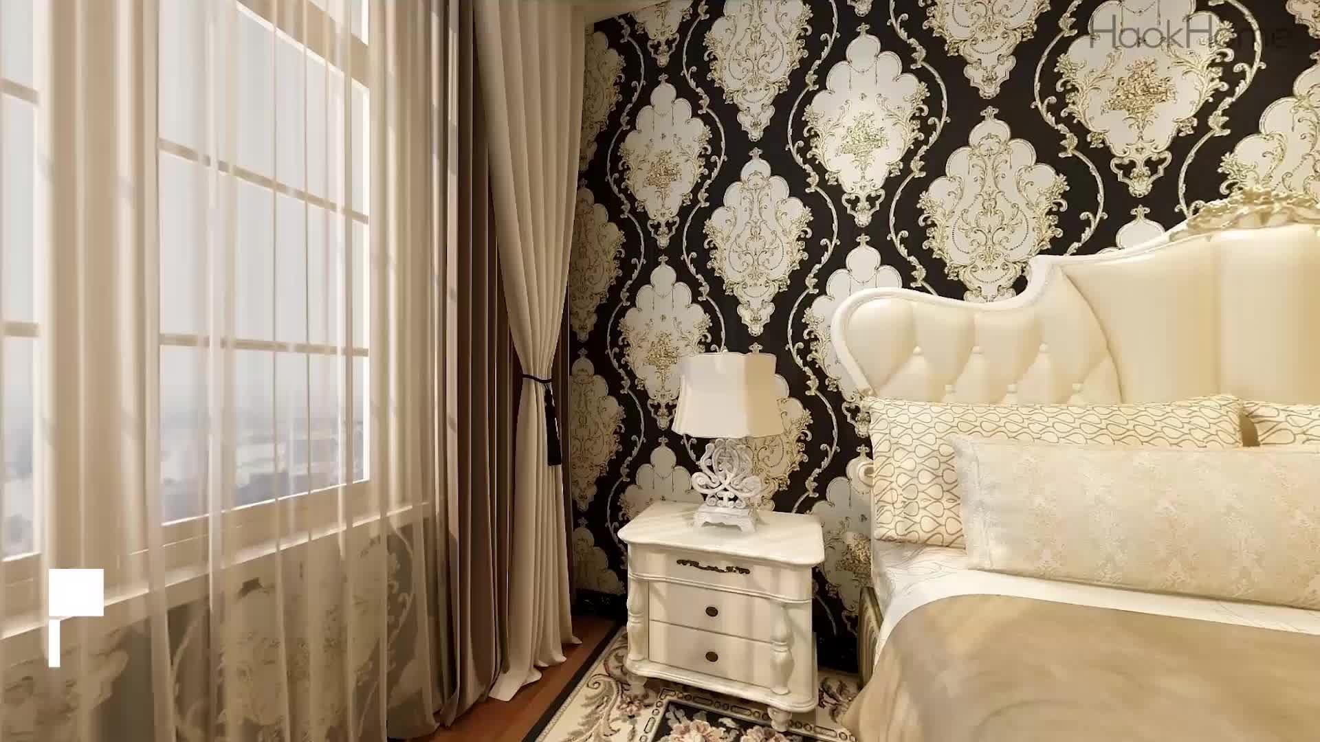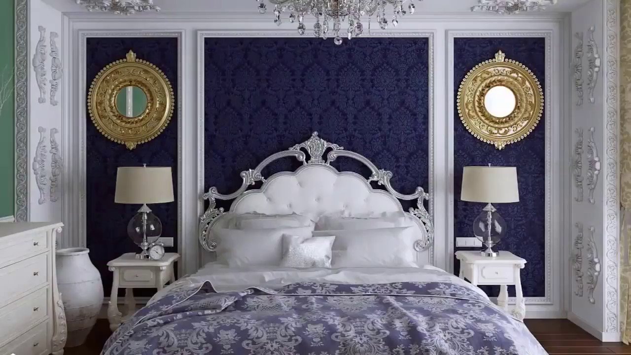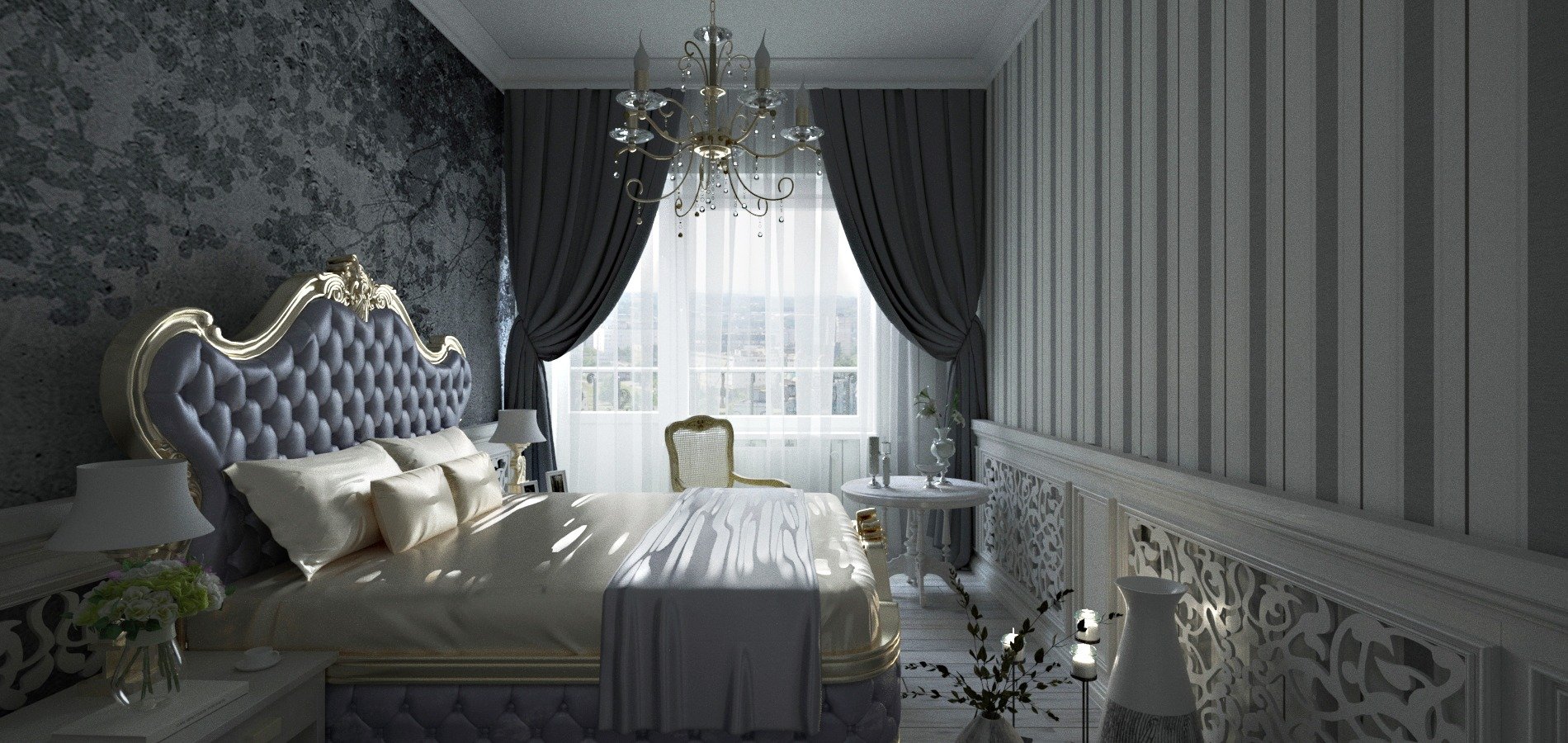 Варианты спальни с обоями Дамаск в стиле Минимализм