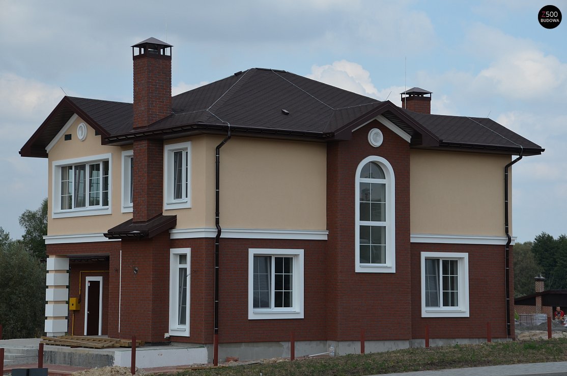 Кирпичный дом с коричневой крышей