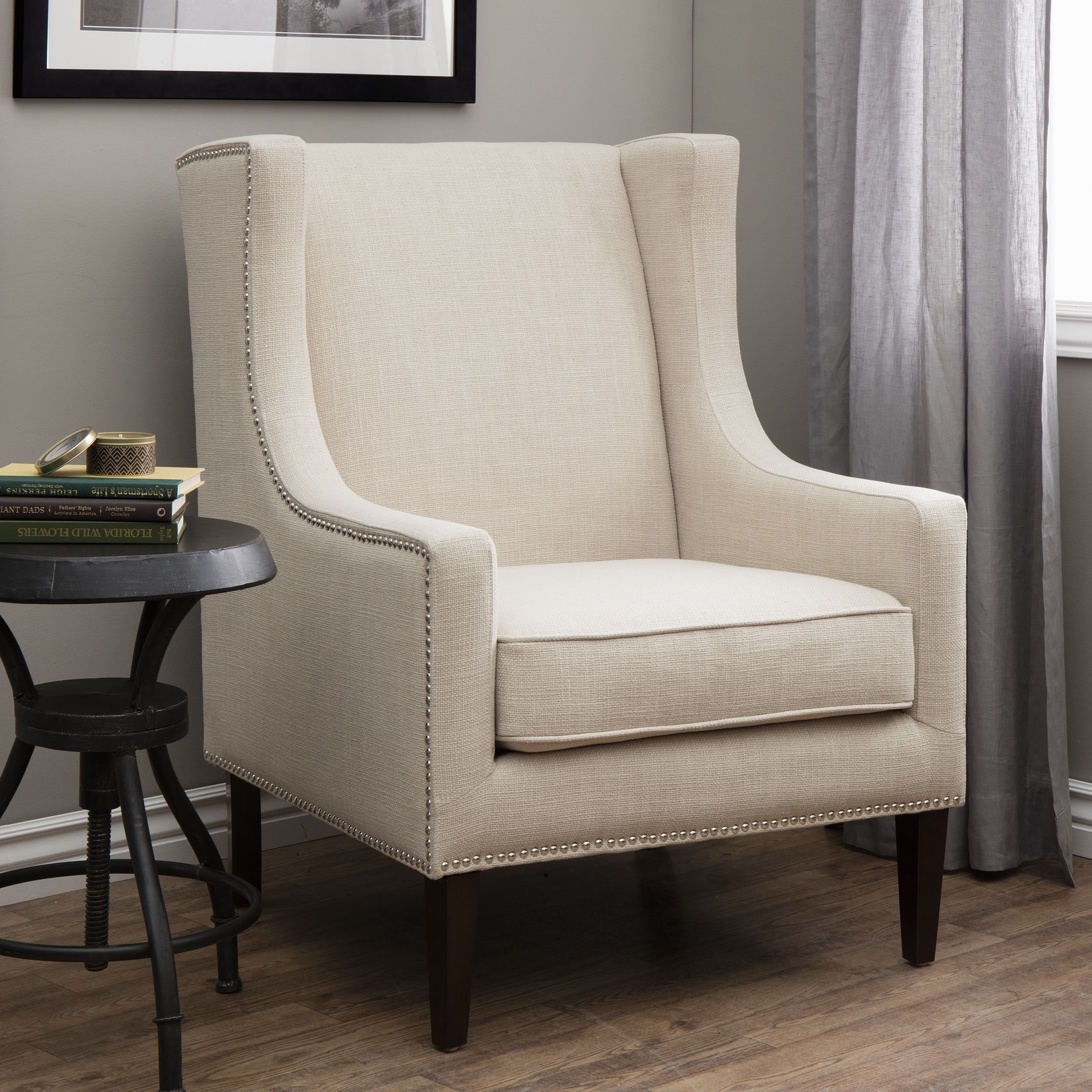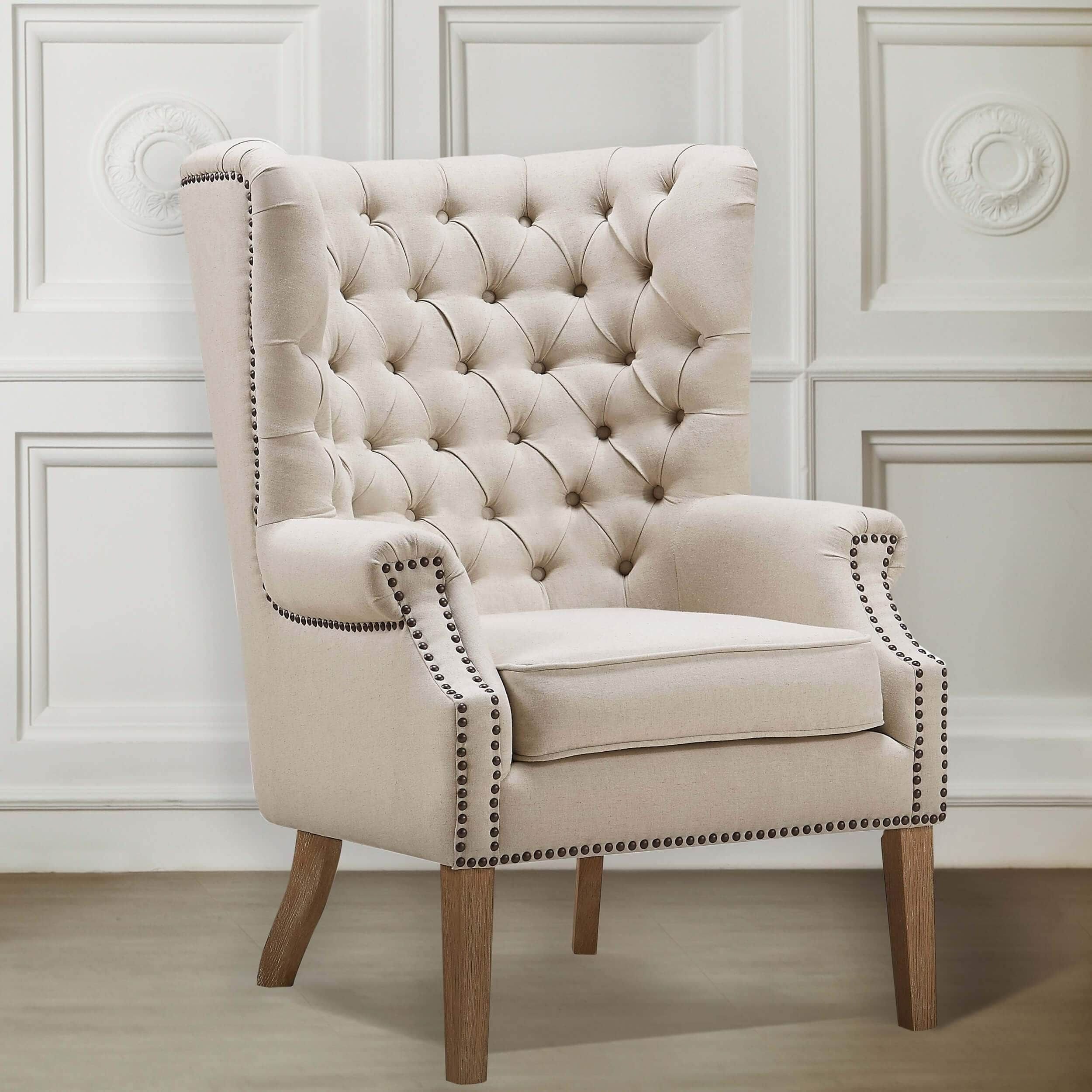Кресло Wing back Armchair белый лен