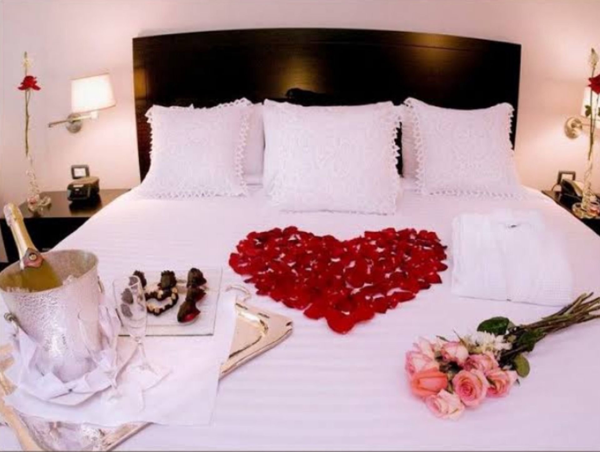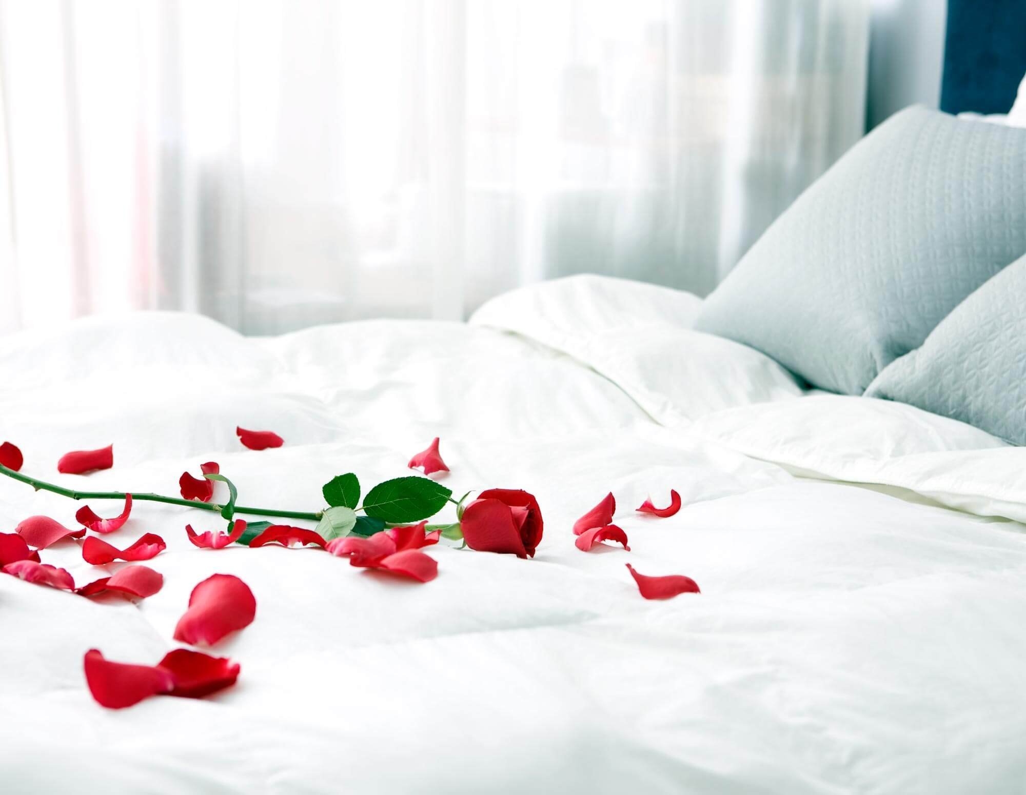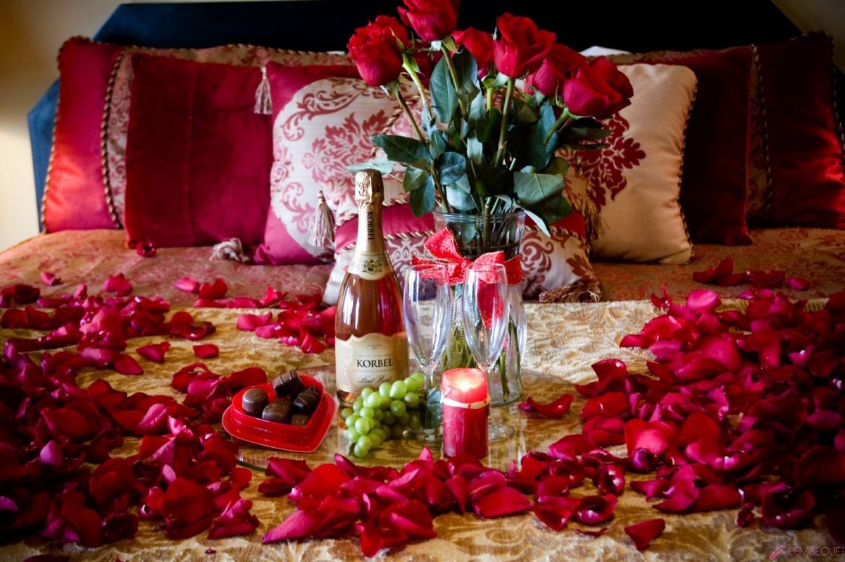 Постель с лепестками роз