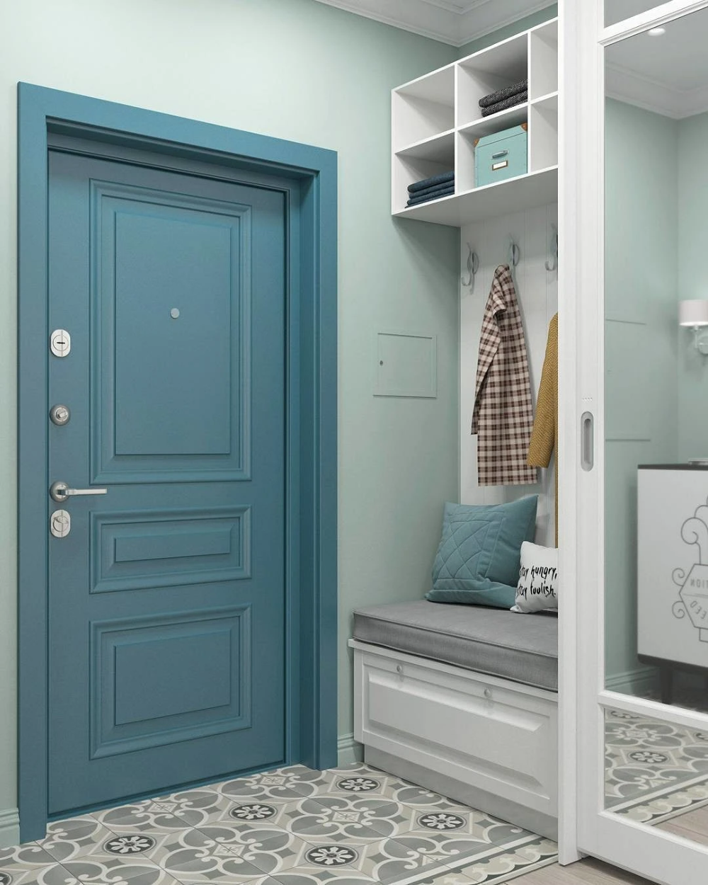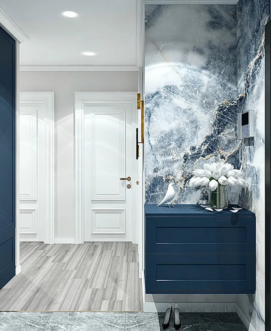Прихожая в серо голубых тонах