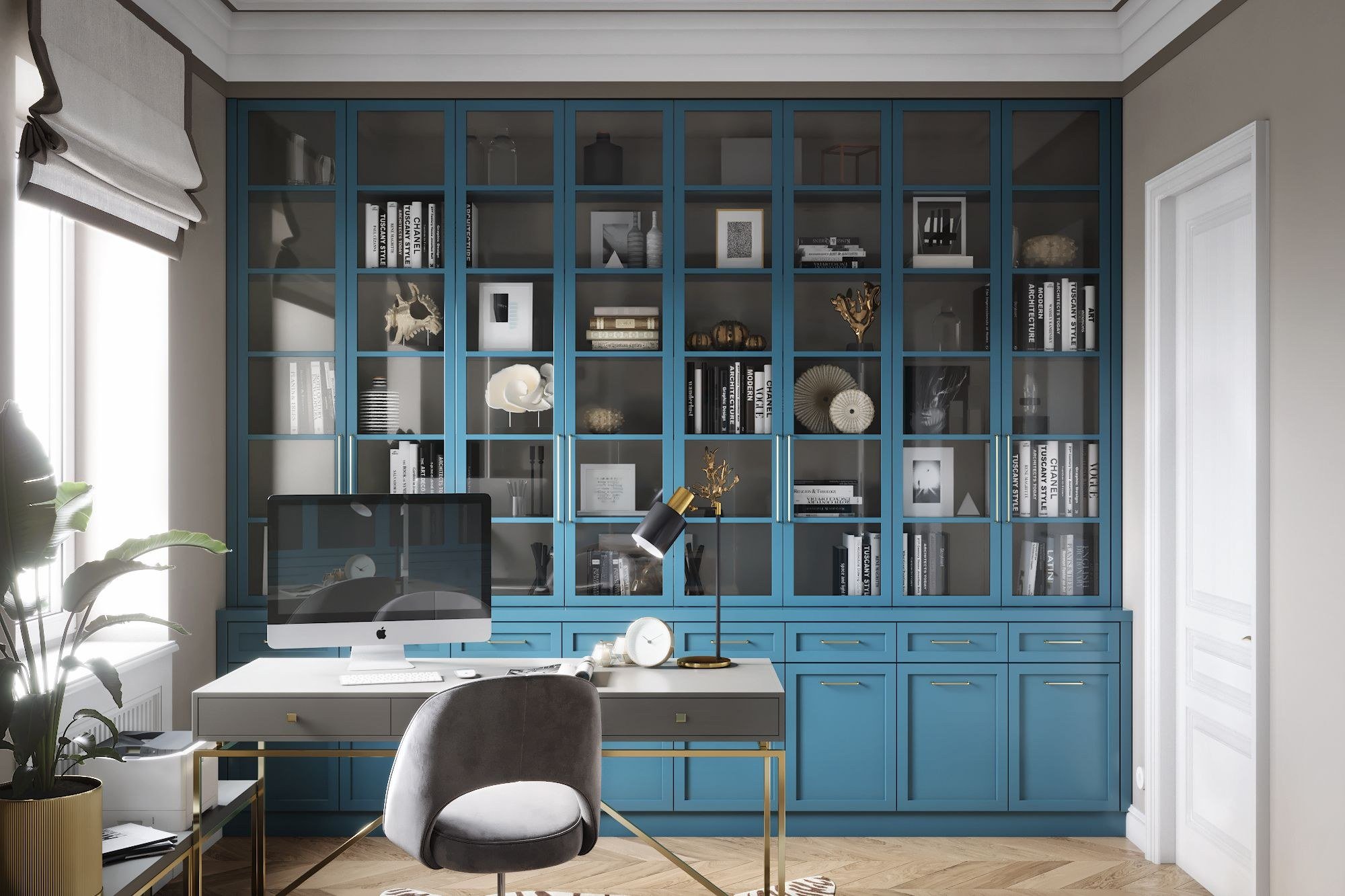 Серо голубой шкаф в интерьере