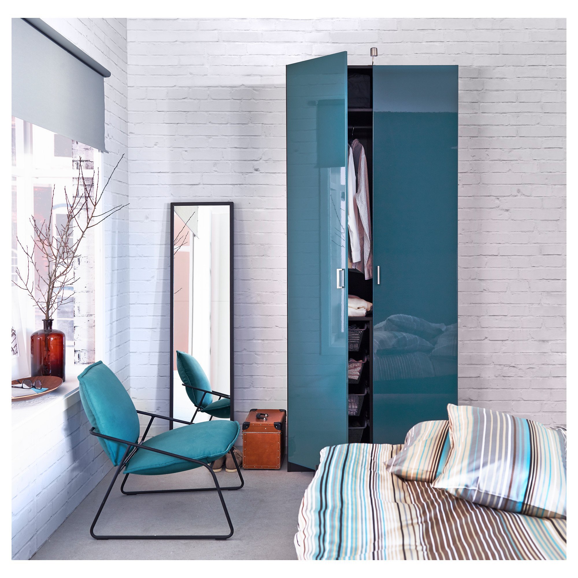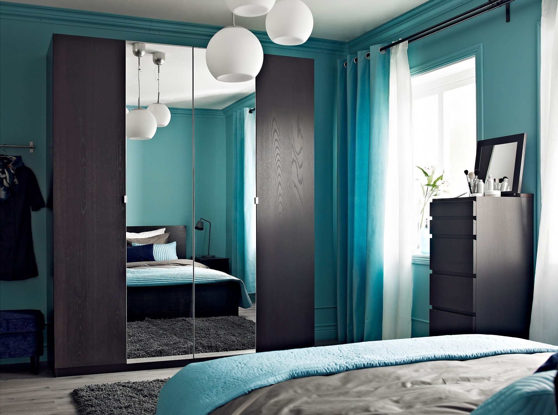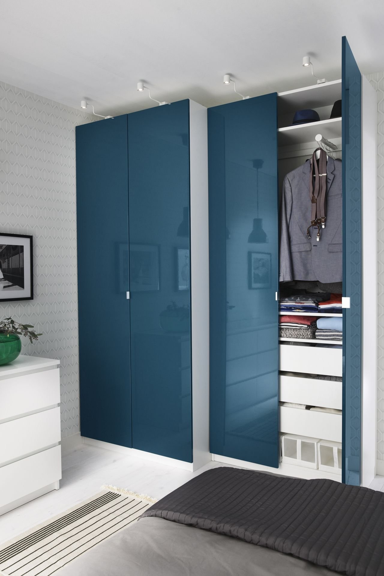 ПАКС икеа синий в интерьере спальни