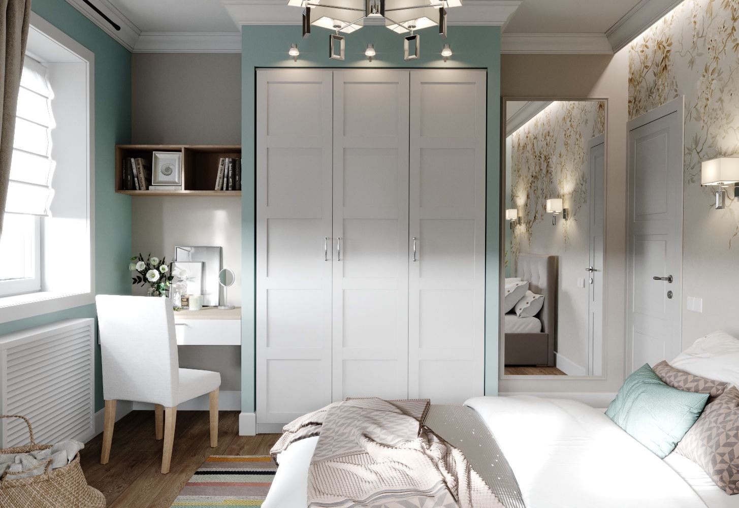 Интерьер спальни со шкафом