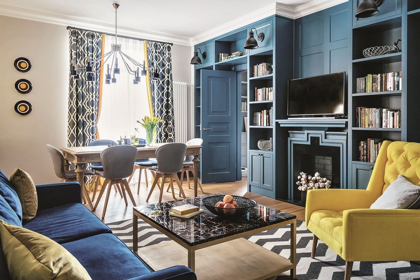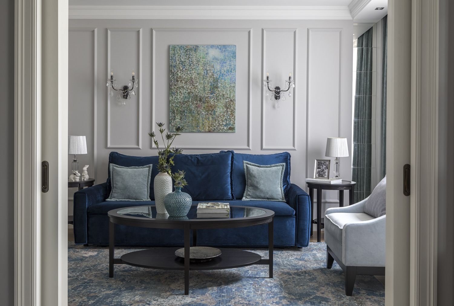 Гостиная в голубых тонах