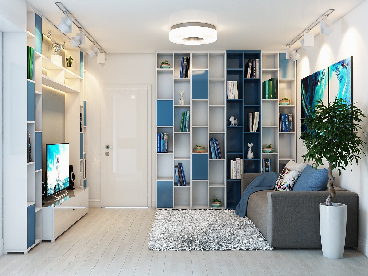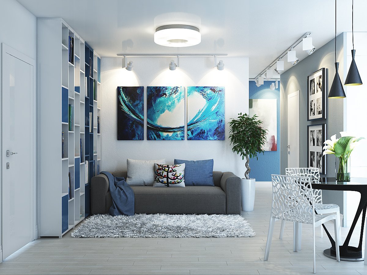Интерьер однушки в синий тонах