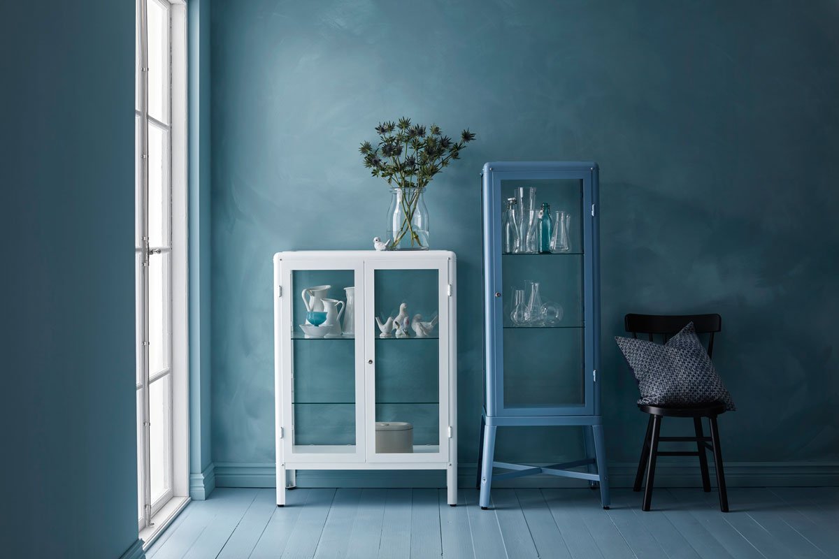 Голубой шкаф в интерьере гостиной