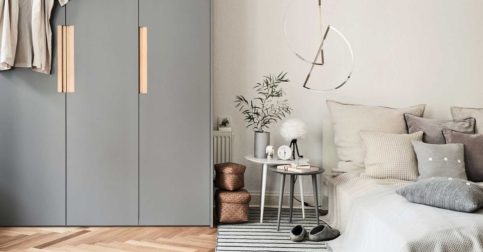 Шкаф в спальню серого цвета
