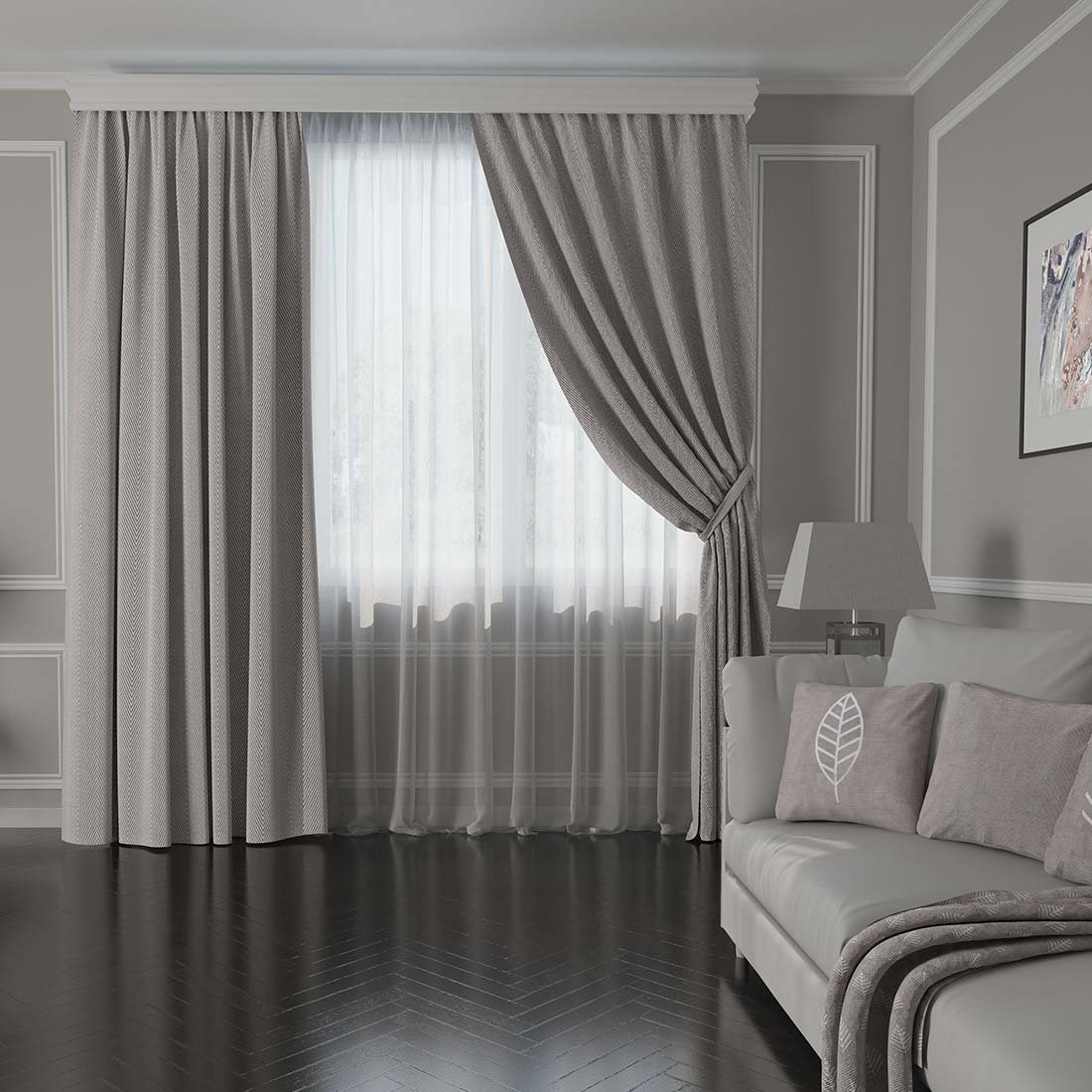 Серые шторы в зал