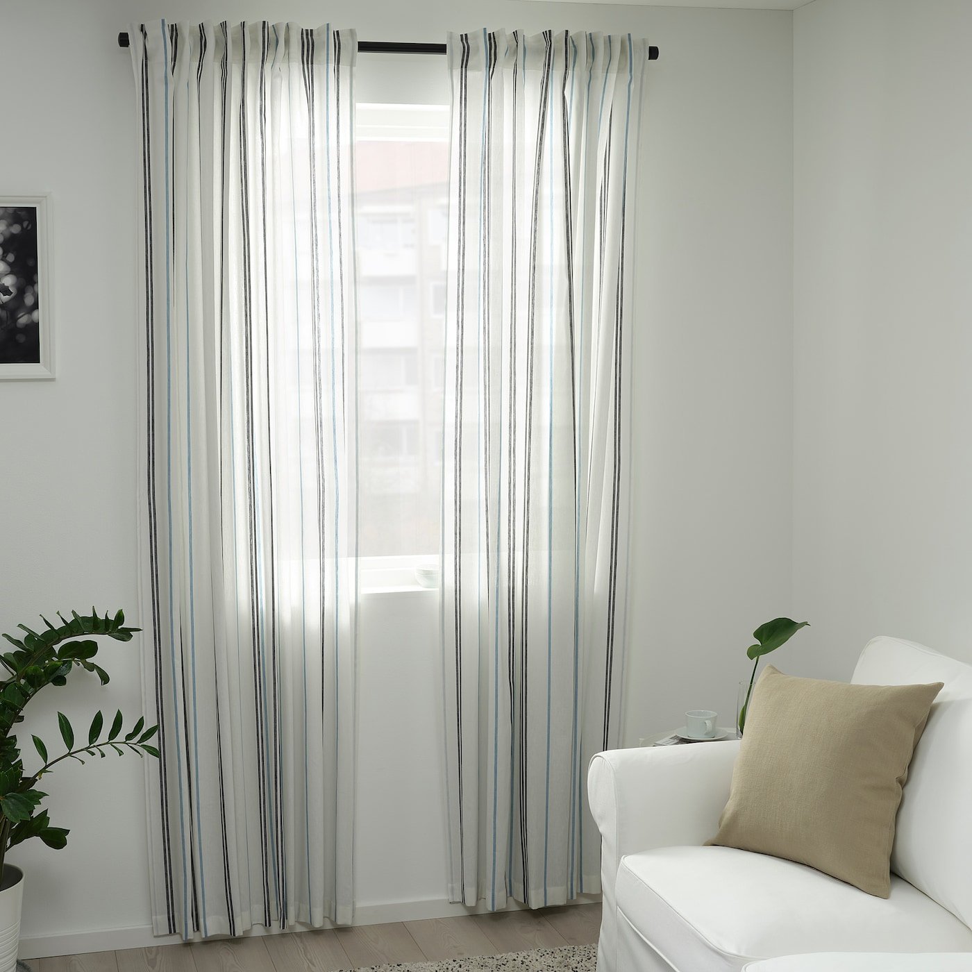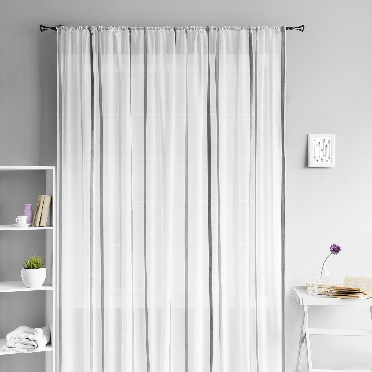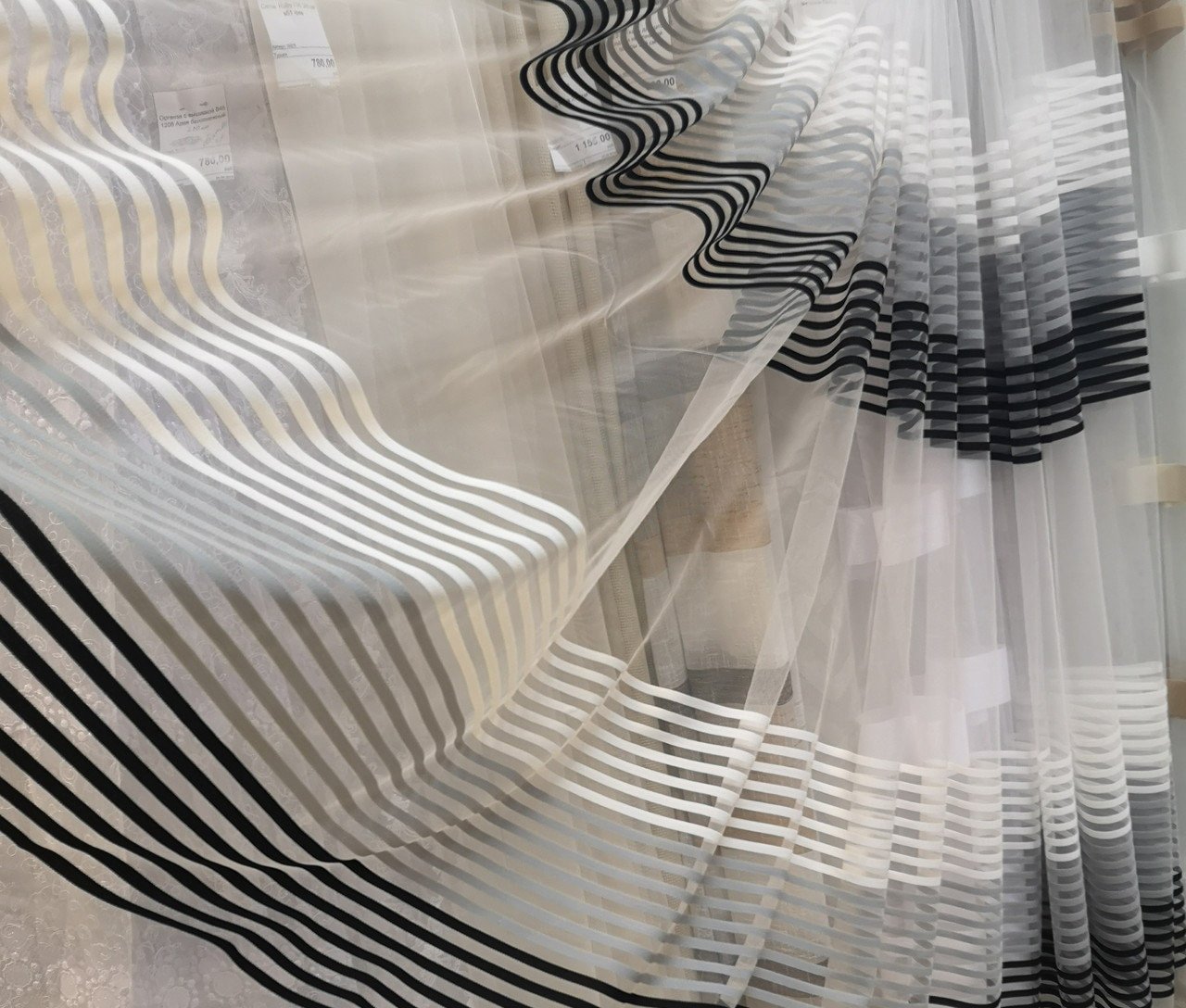 Белая тюль с черными полосками