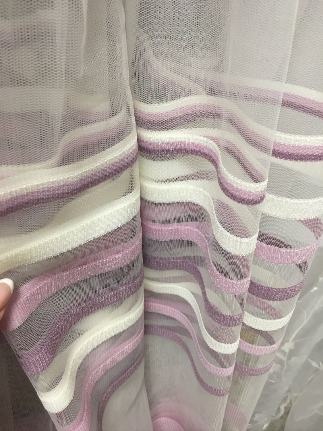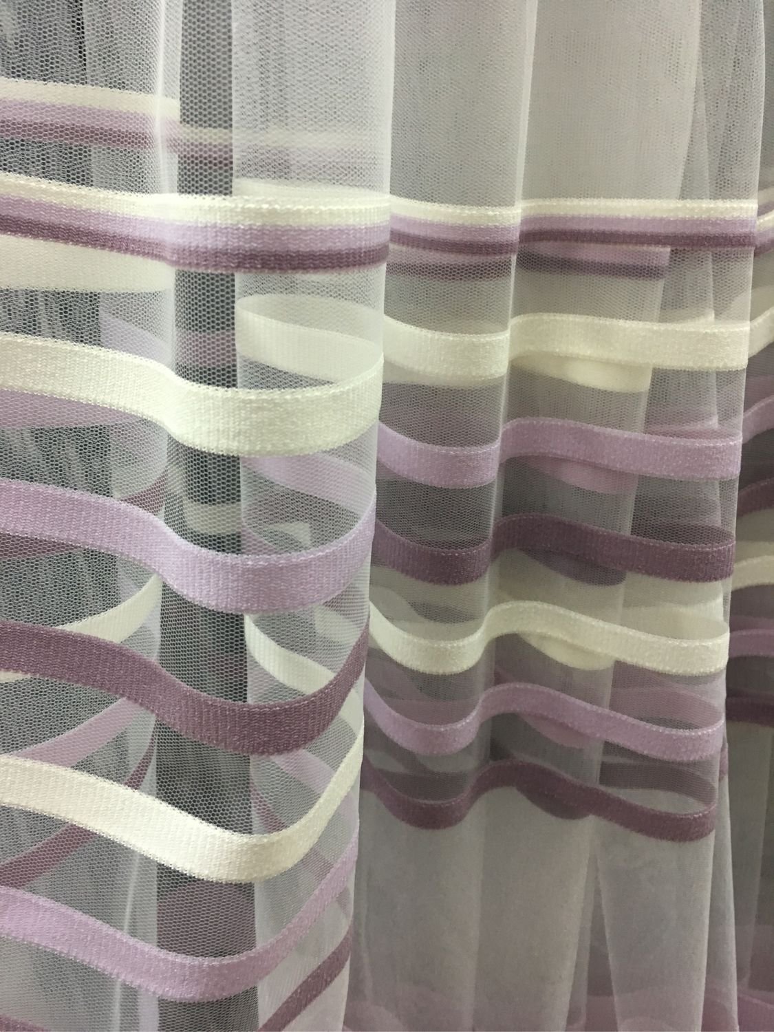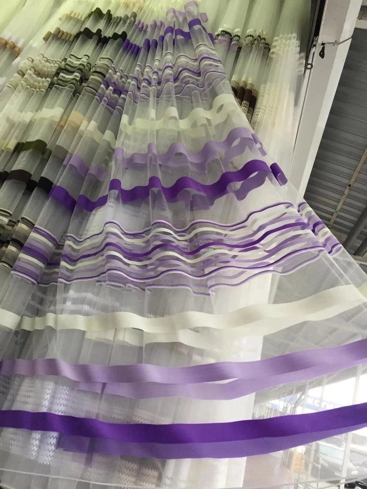 Тюль с фиолетовыми полосками