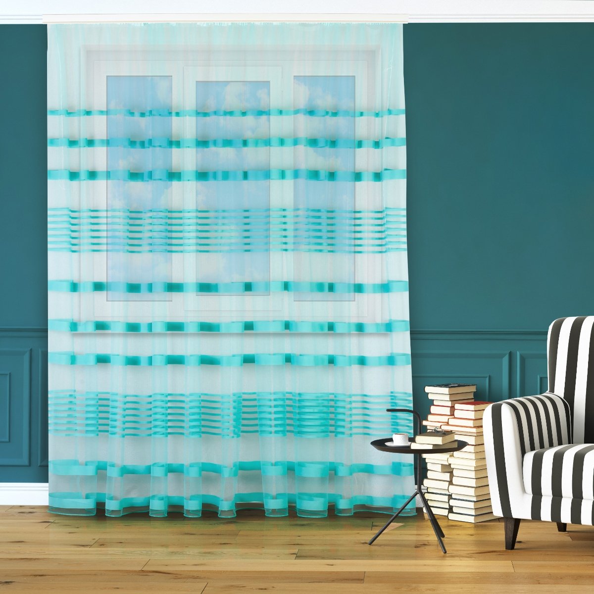 Тюль с бирюзовыми полосками