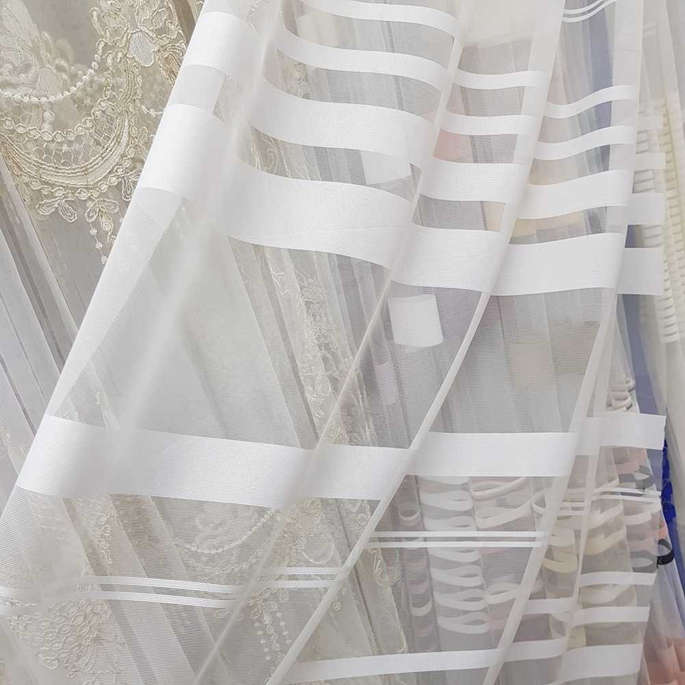 Тюль белый матовый с полосками до половины