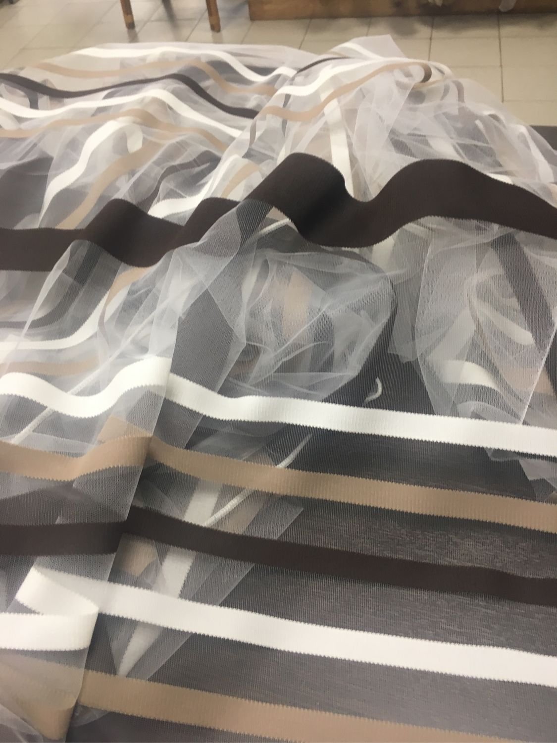 Тюль с коричневыми полосками