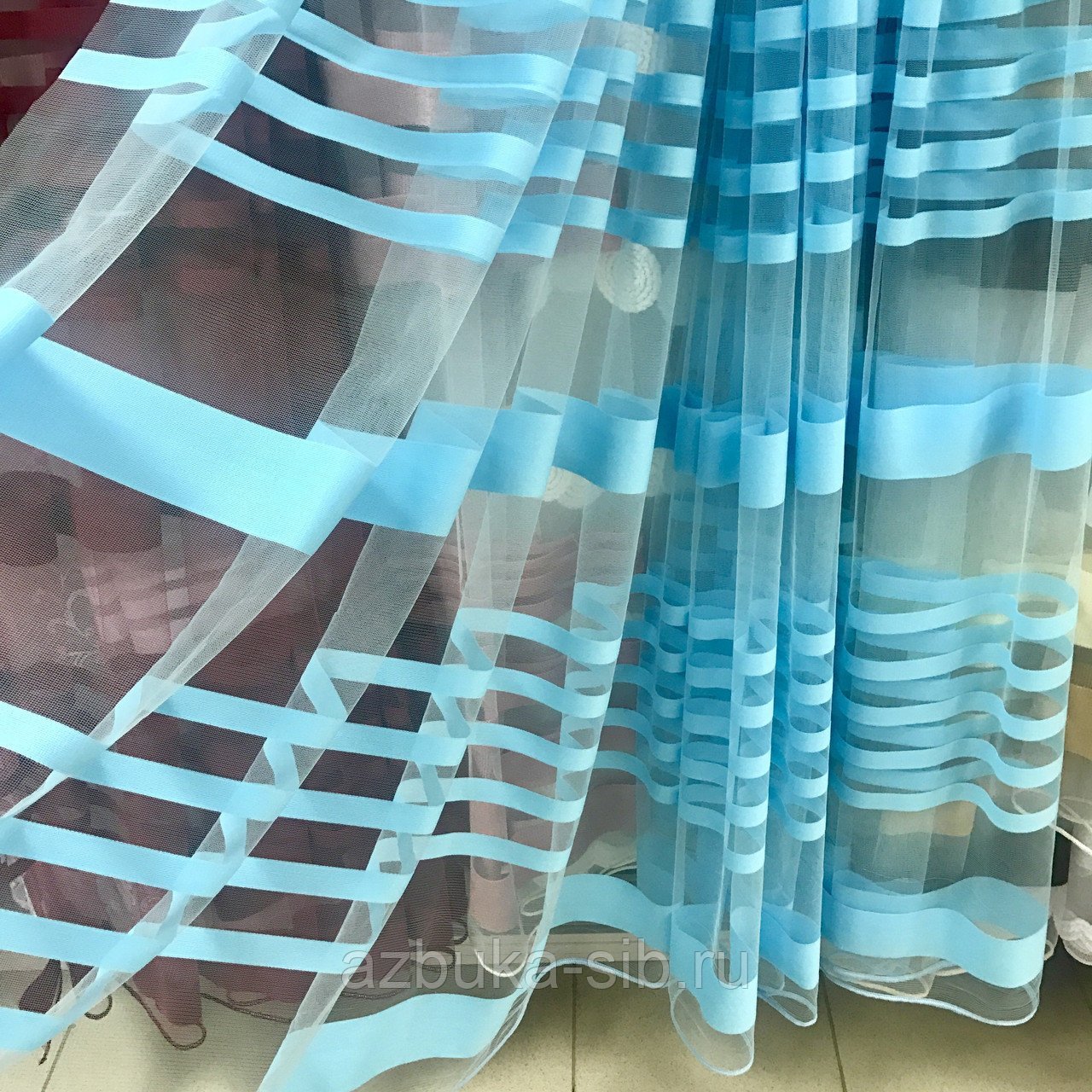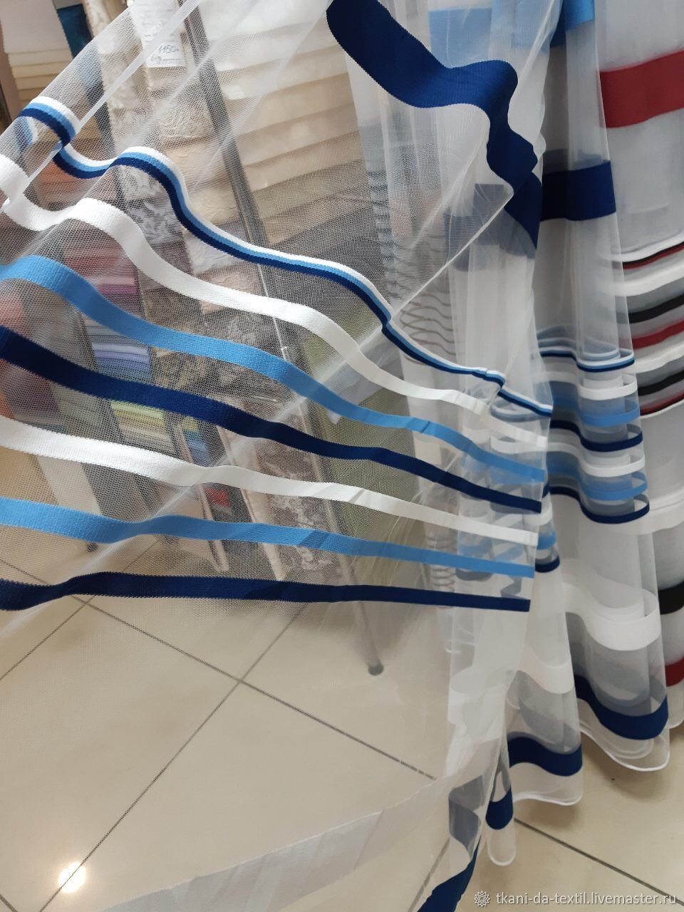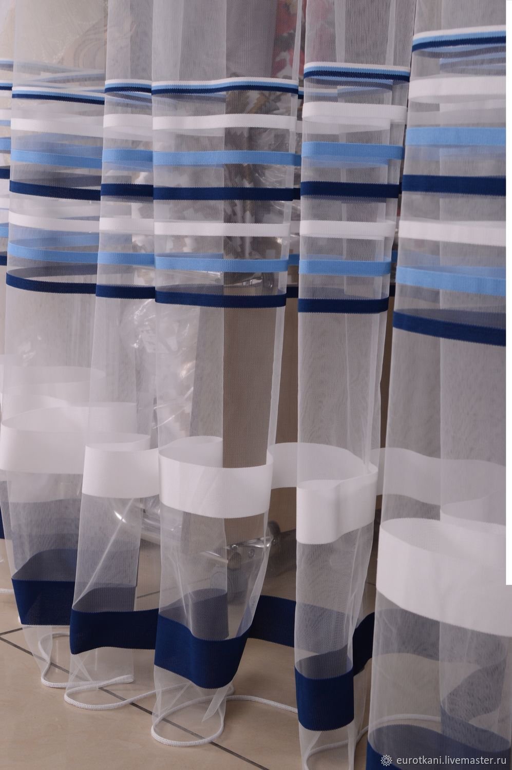 Тюль с синими полосками