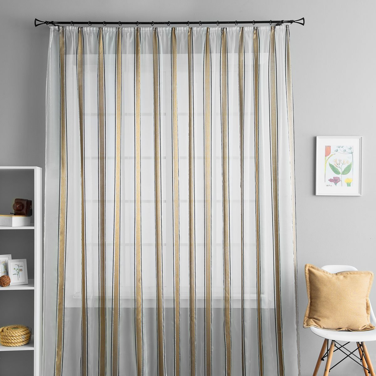 Полосатая тюль в интерьере гостиной