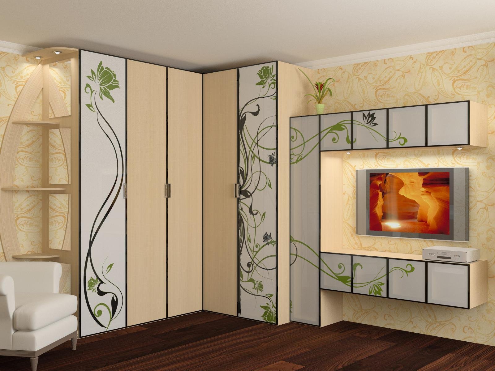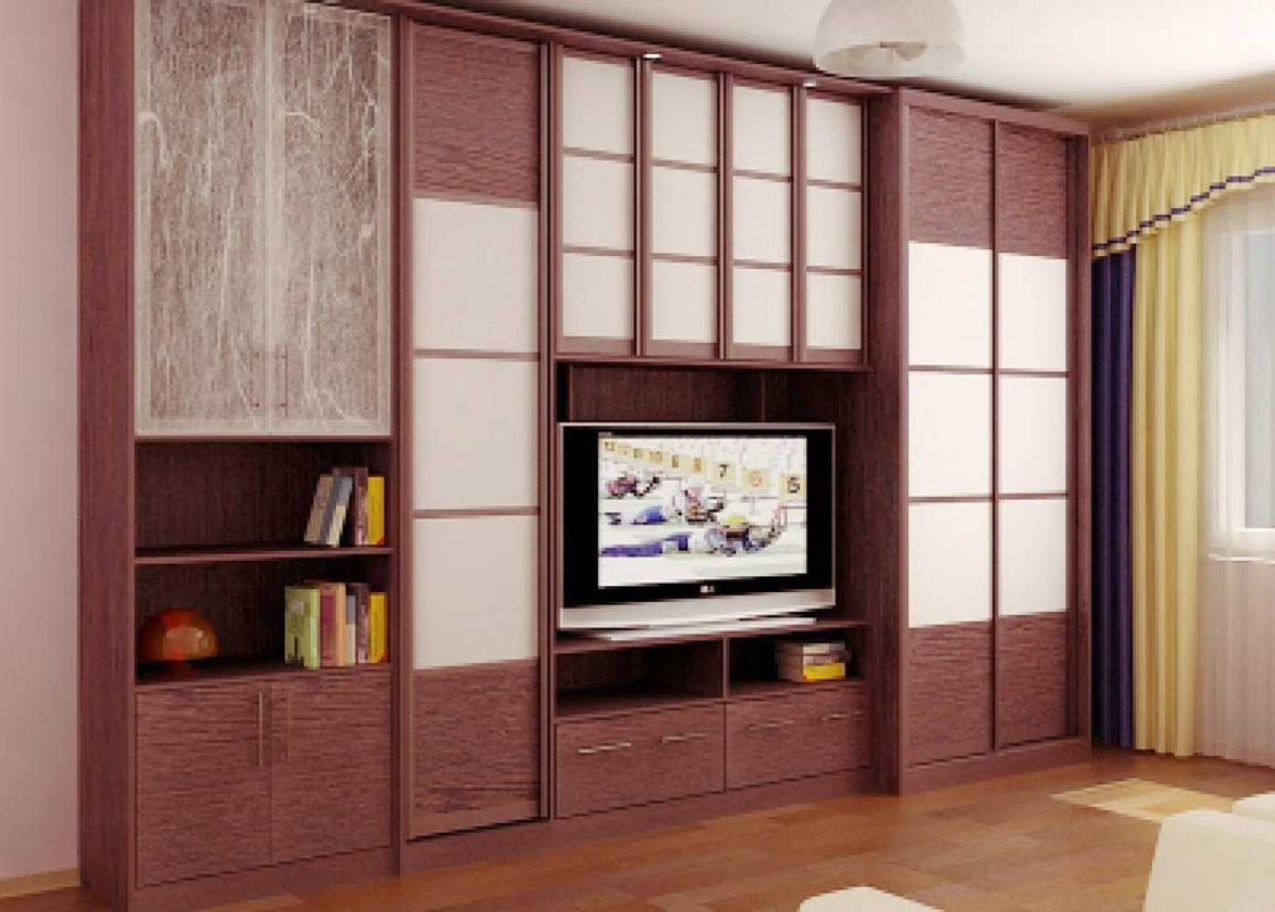 Шкафы-купе в гостиную с телевизором