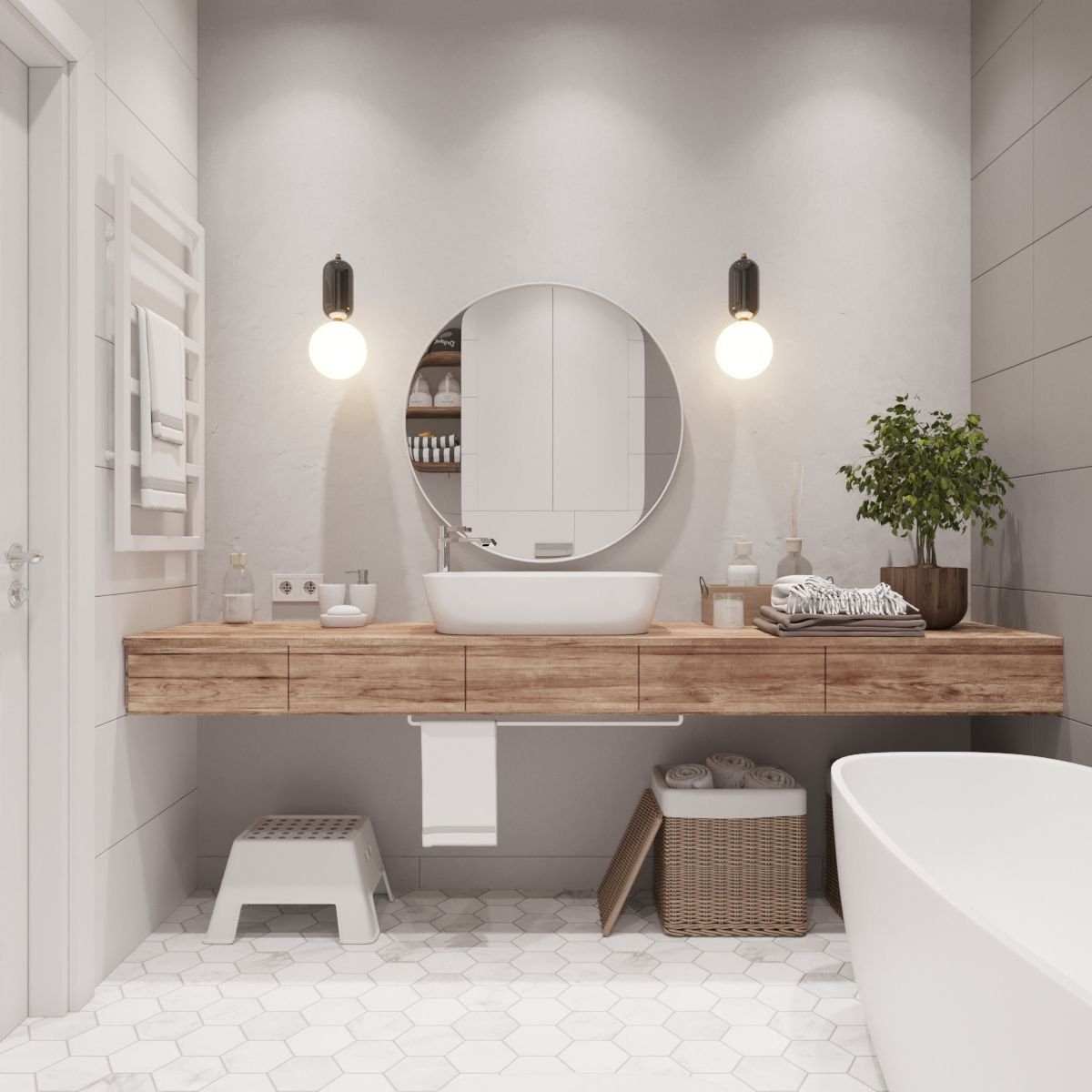 Ванна в современном стиле в светлых тонах