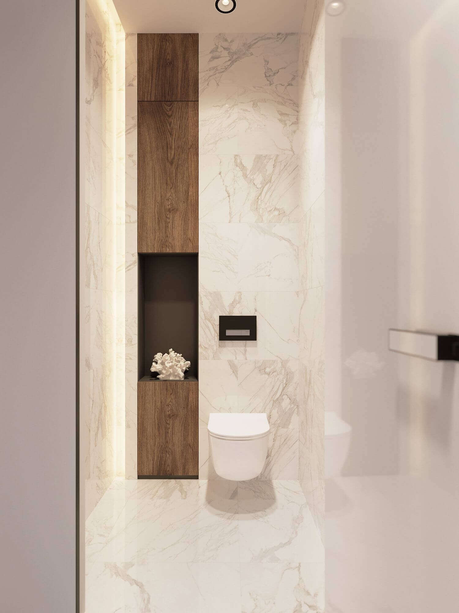 Ванная белый мрамор и дерево