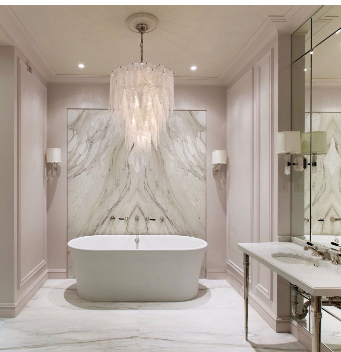 Белый мрамор в интерьере ванной
