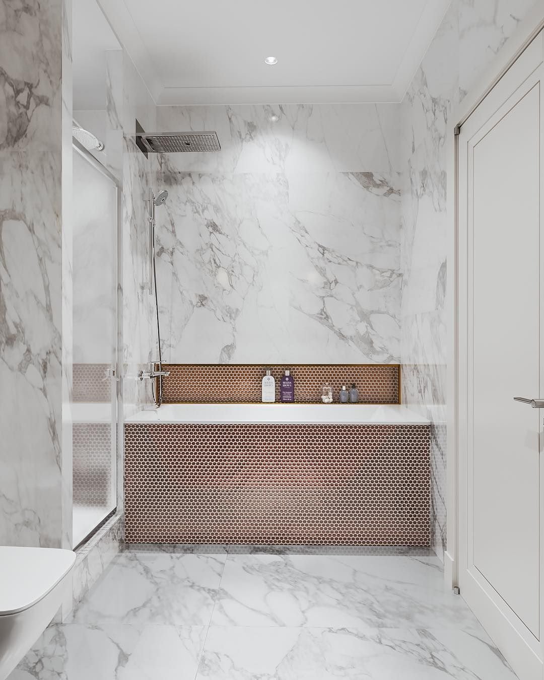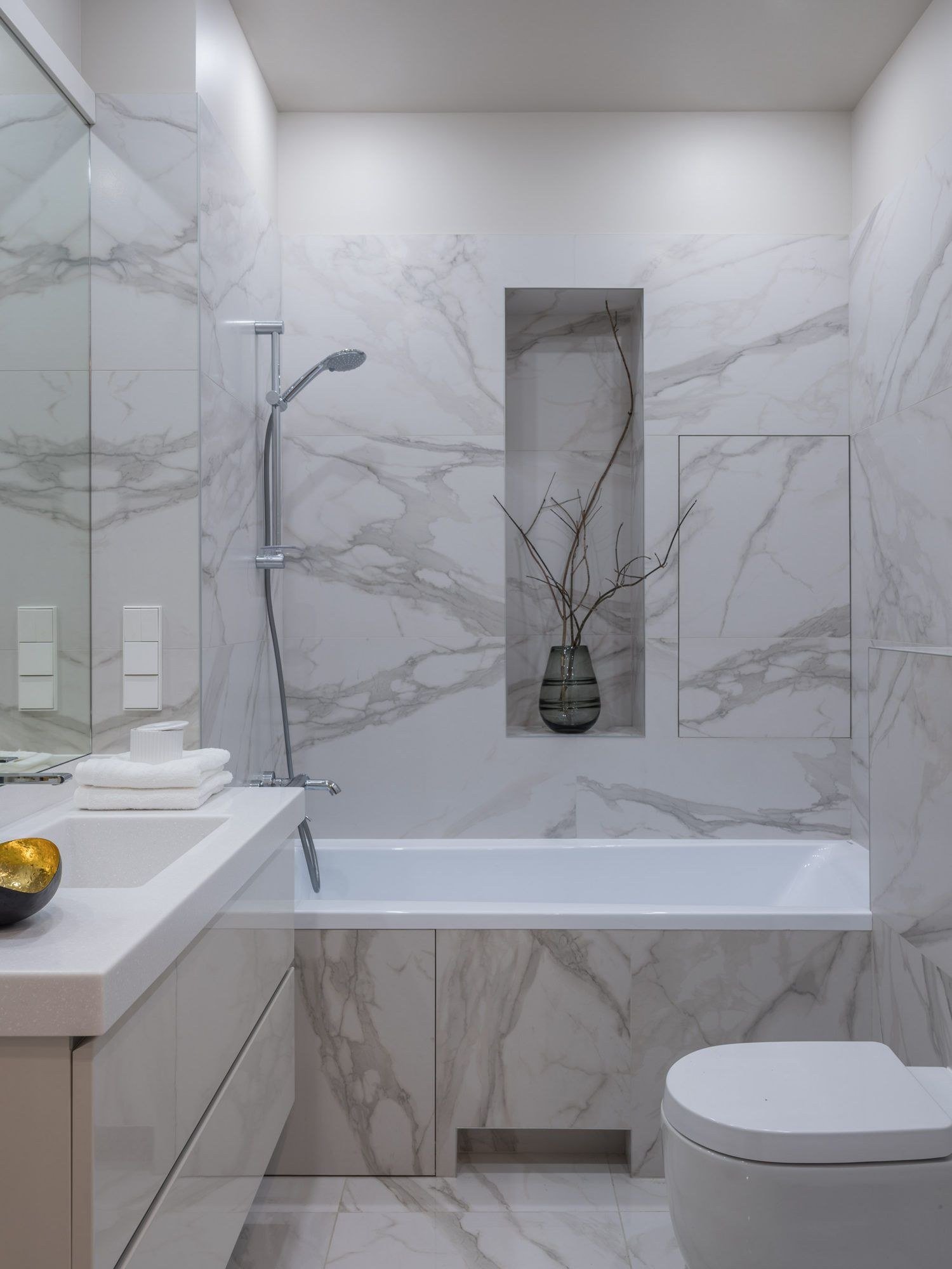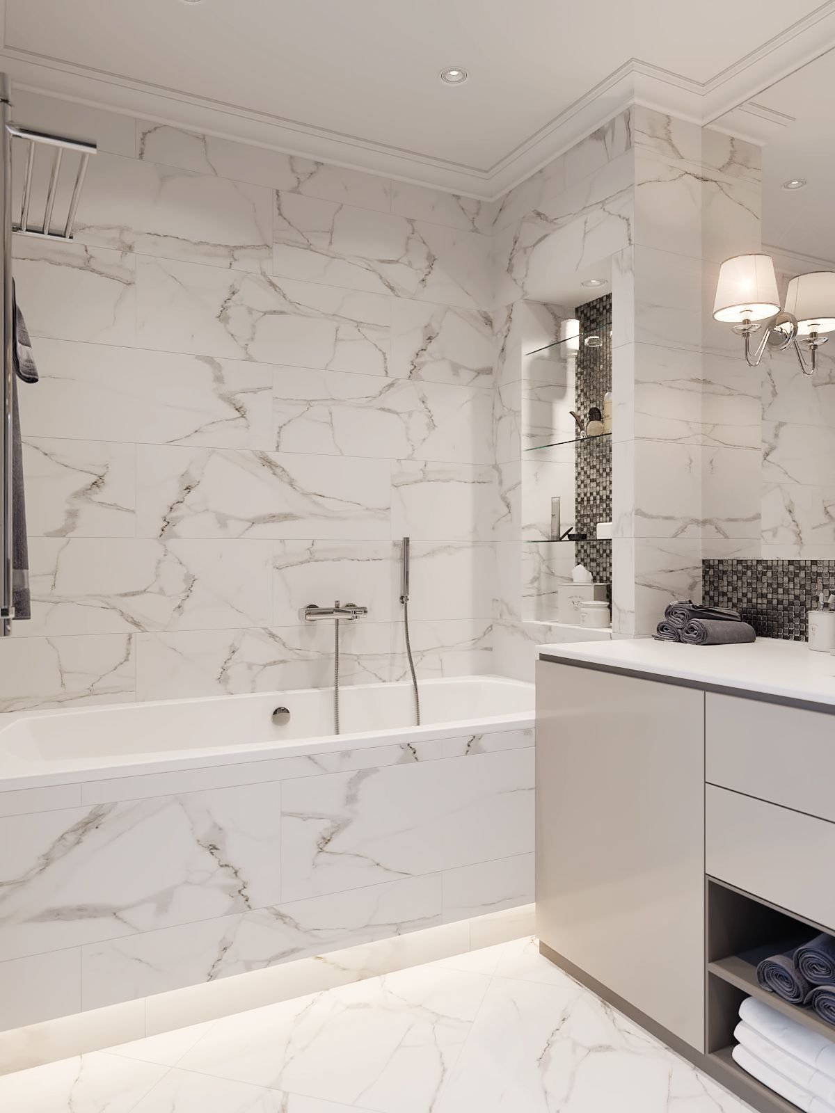 Ванная с плиткой под мрамор