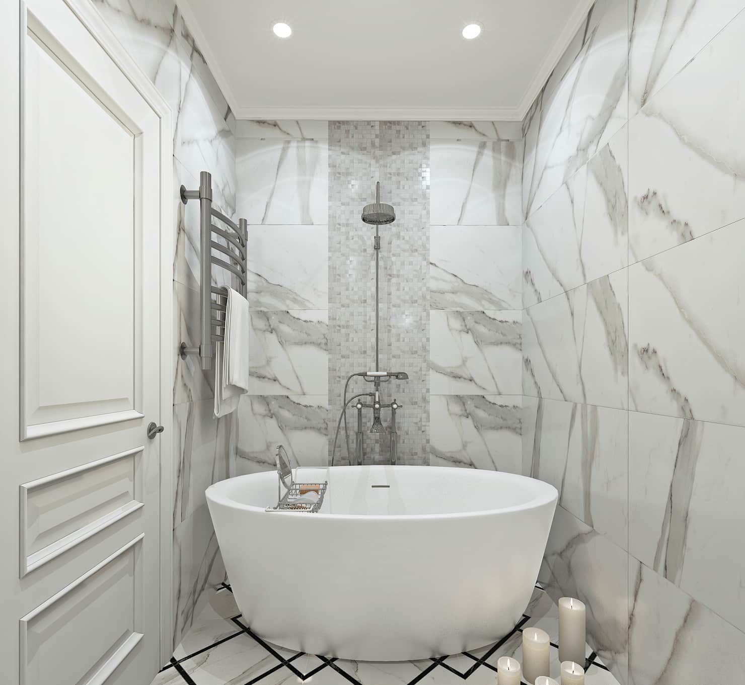 Плитка под мрамор в маленькой ванной