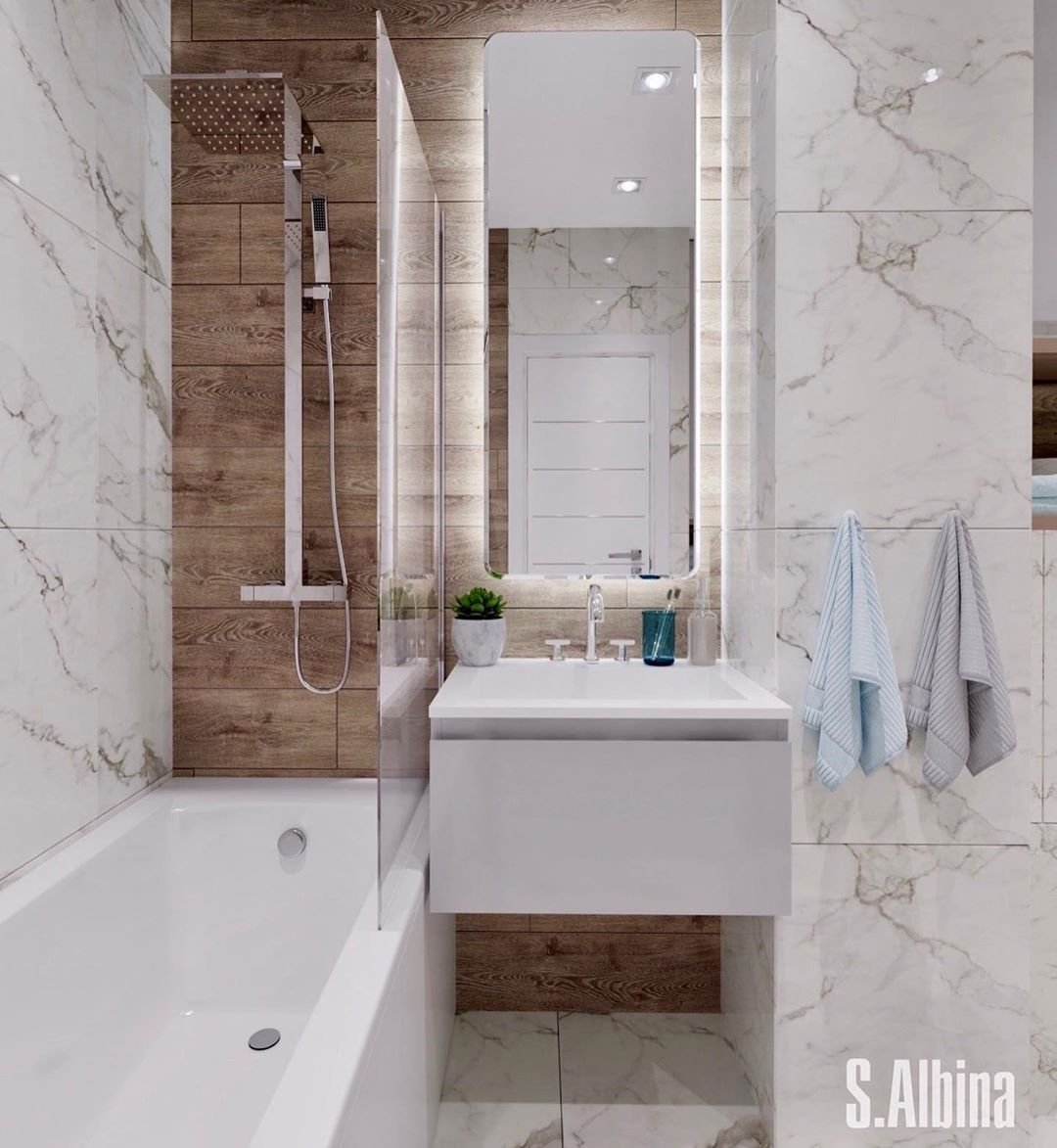 Плитка в ванную мрамор и дерево