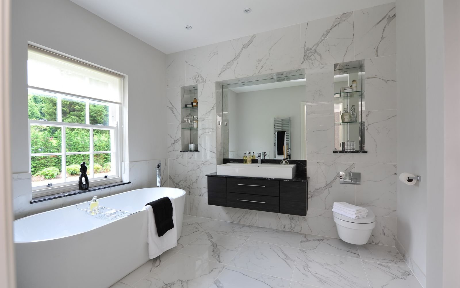 Ванная белый мрамор и черной сантехникой