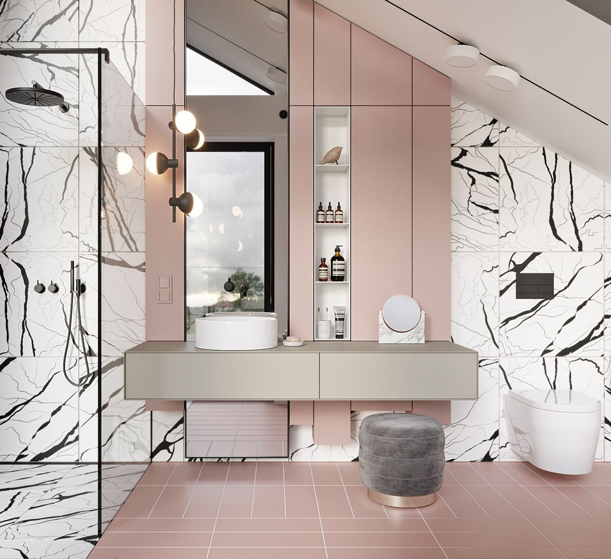 Ванная комната в пудровых тонах