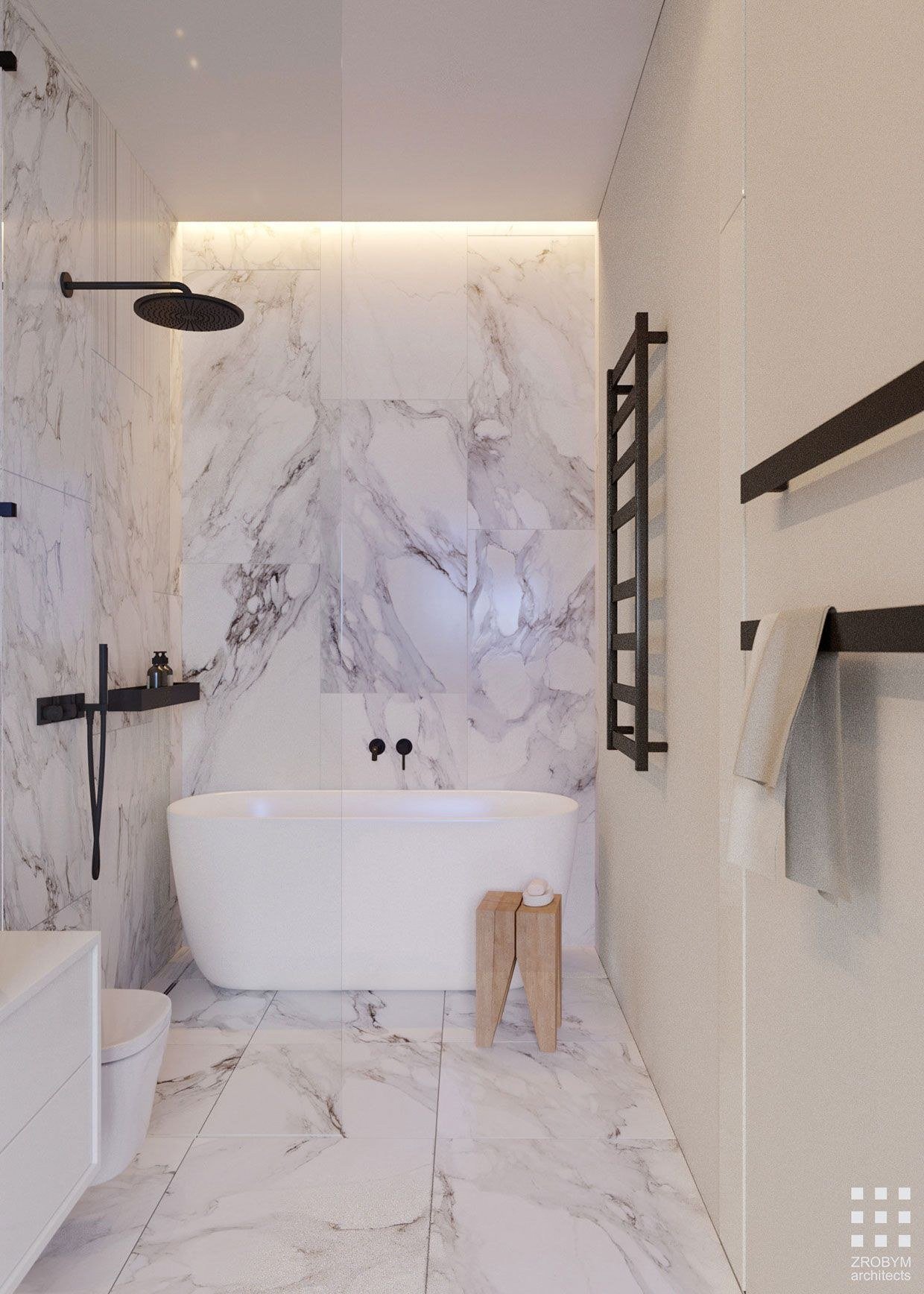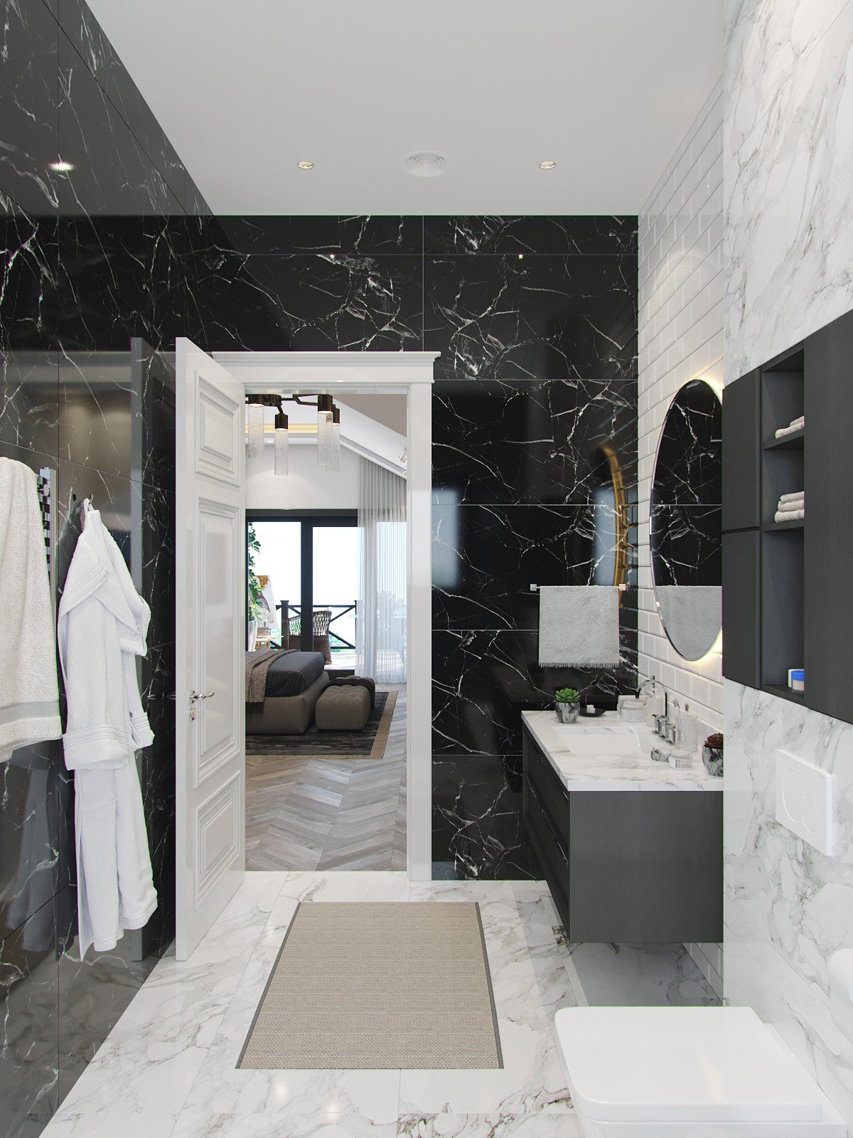 Белый и черный мрамор в ванной