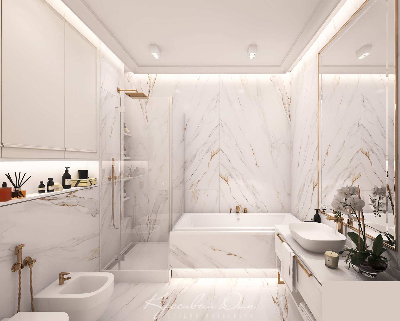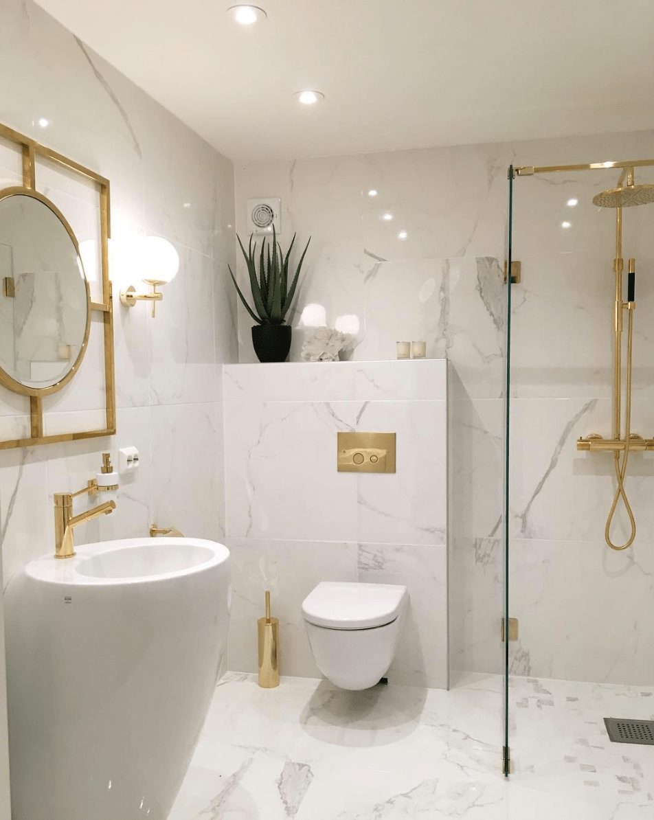 Ванная комната белая с золотом