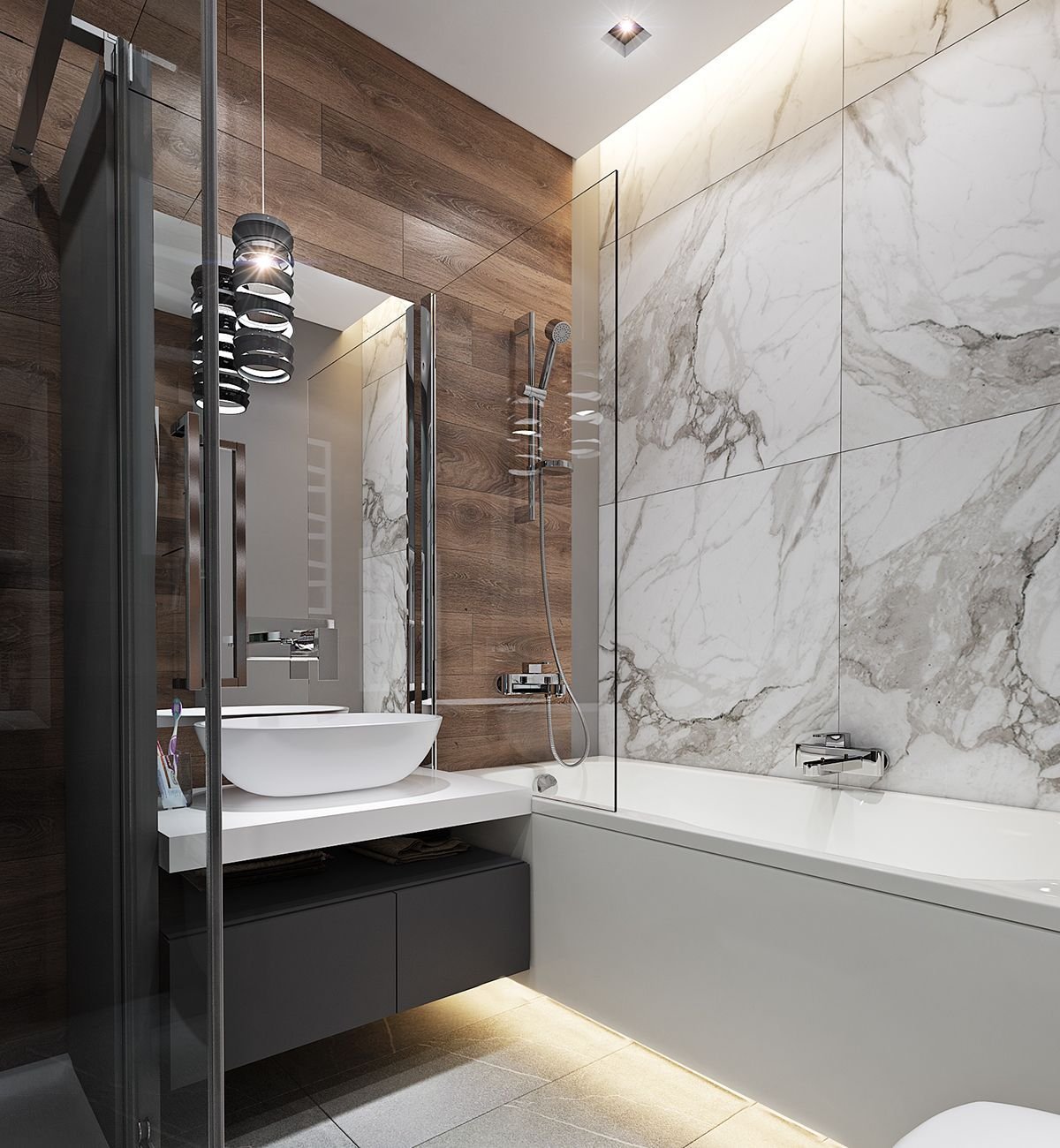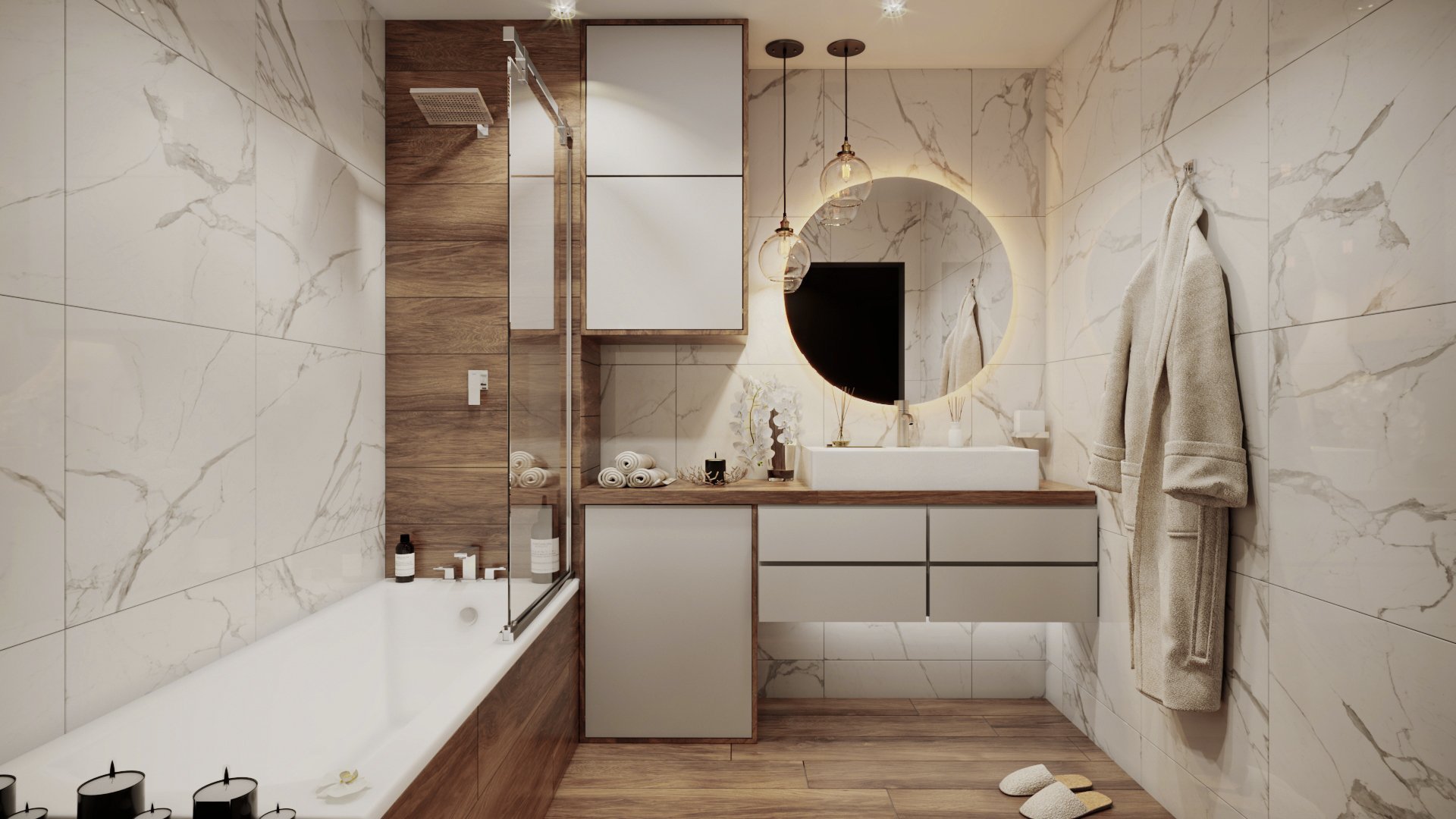 Ванная под мрамор и дерево