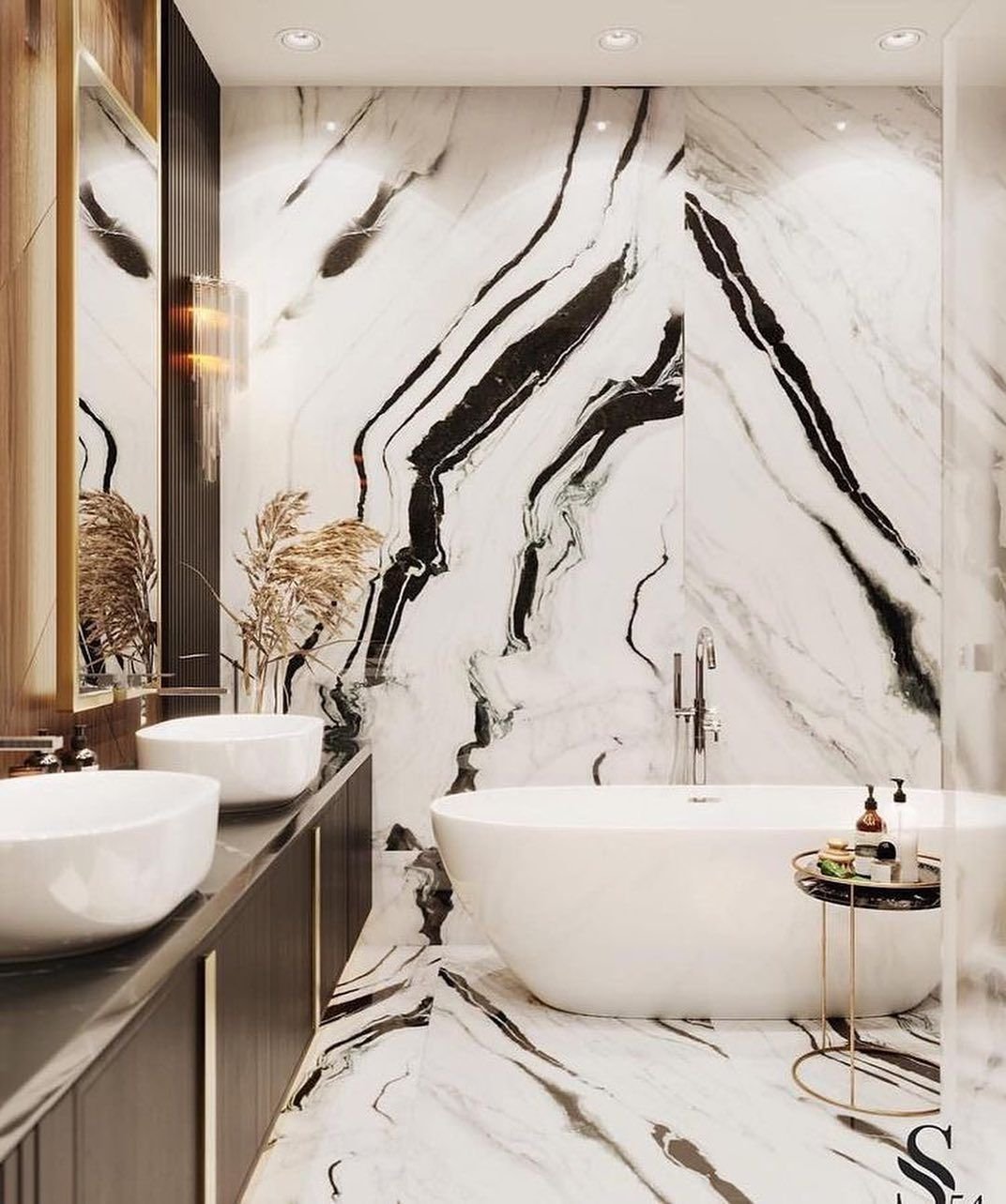 Черно белая мраморная ванная