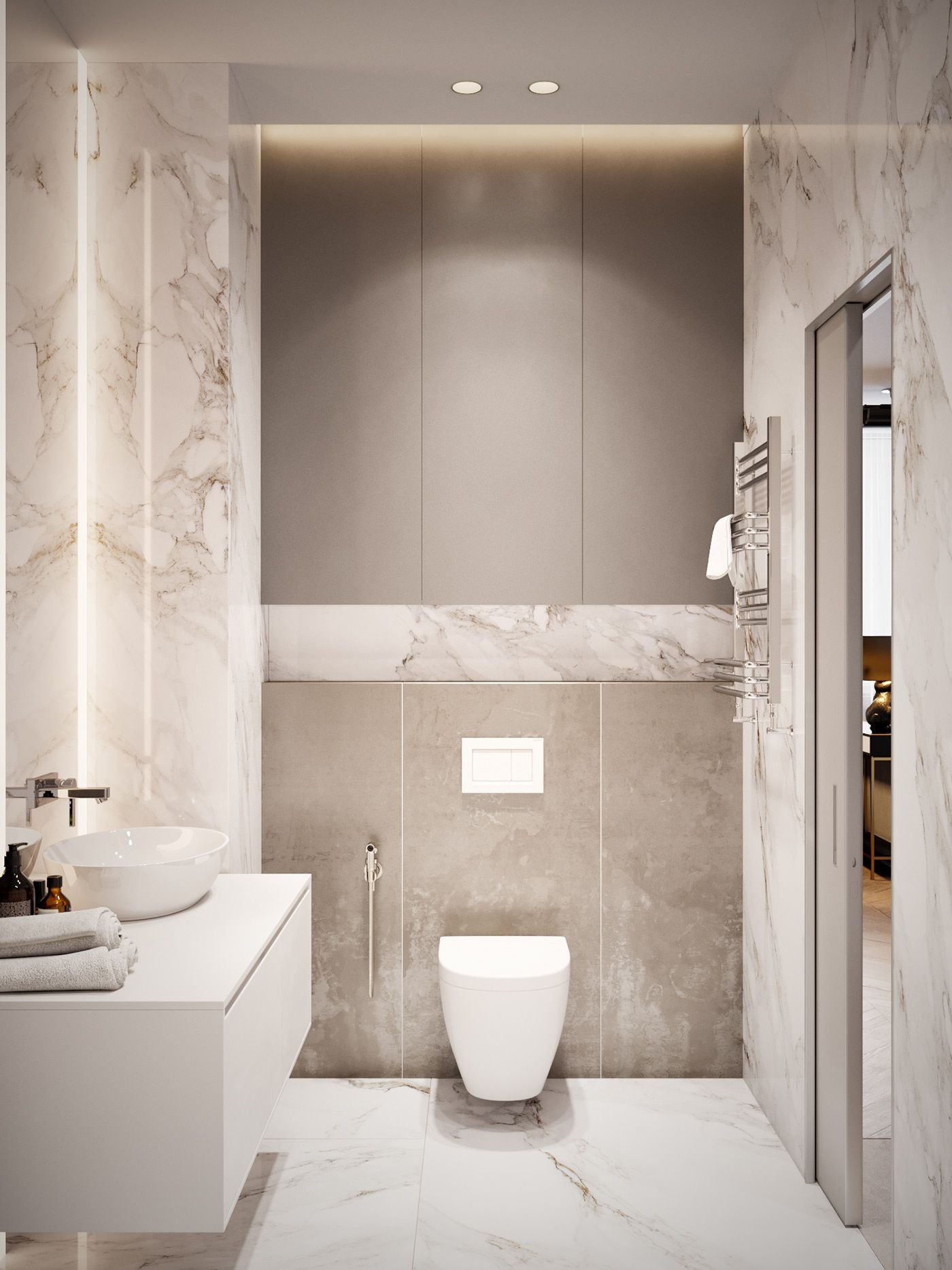 Туалетная комната в белом мраморе