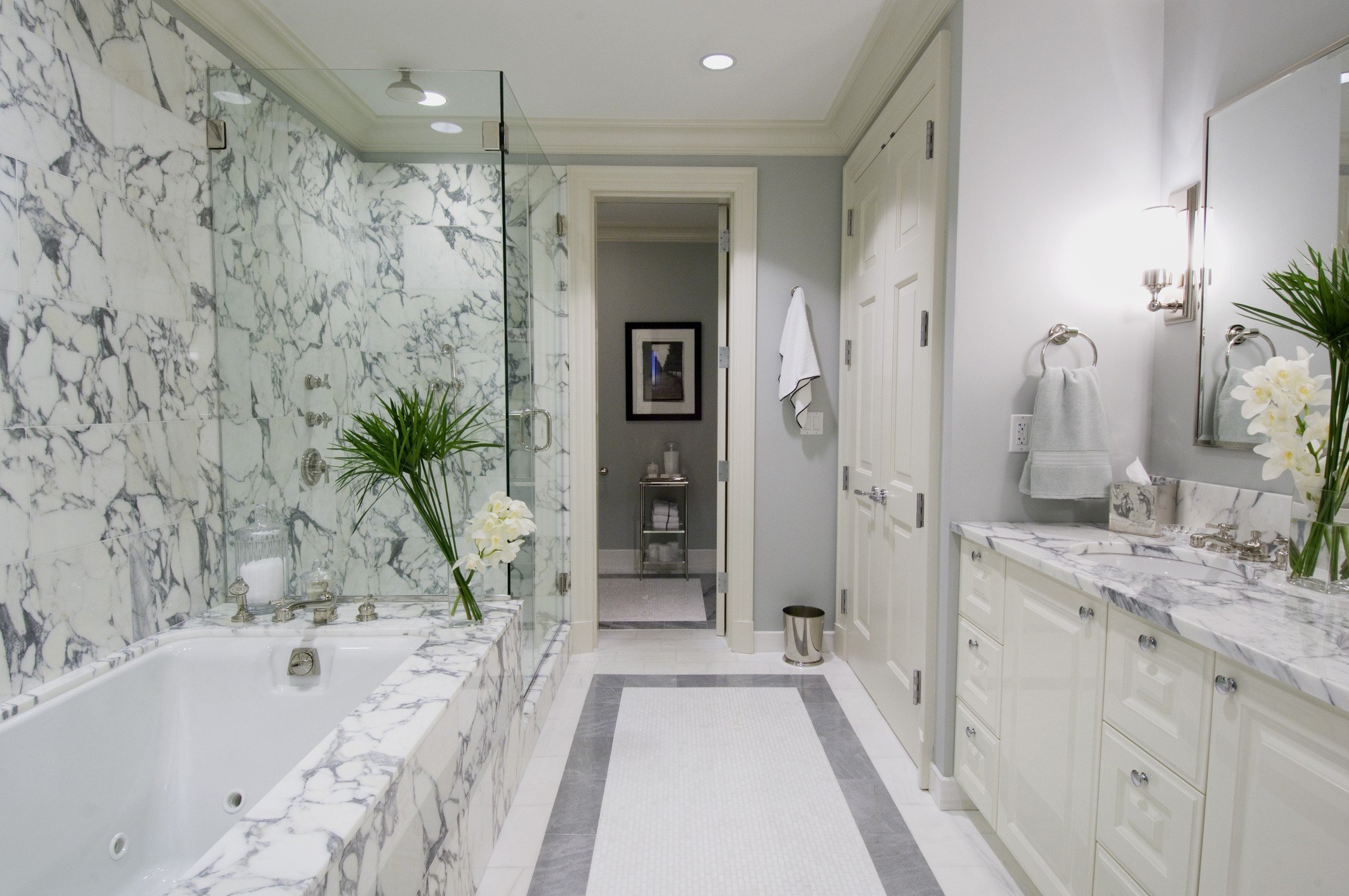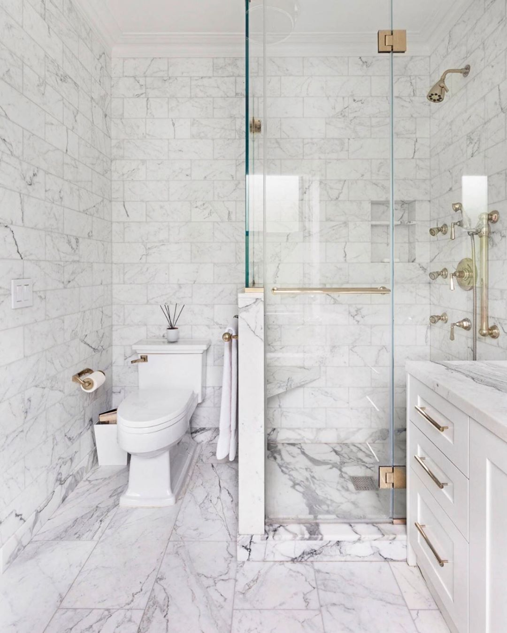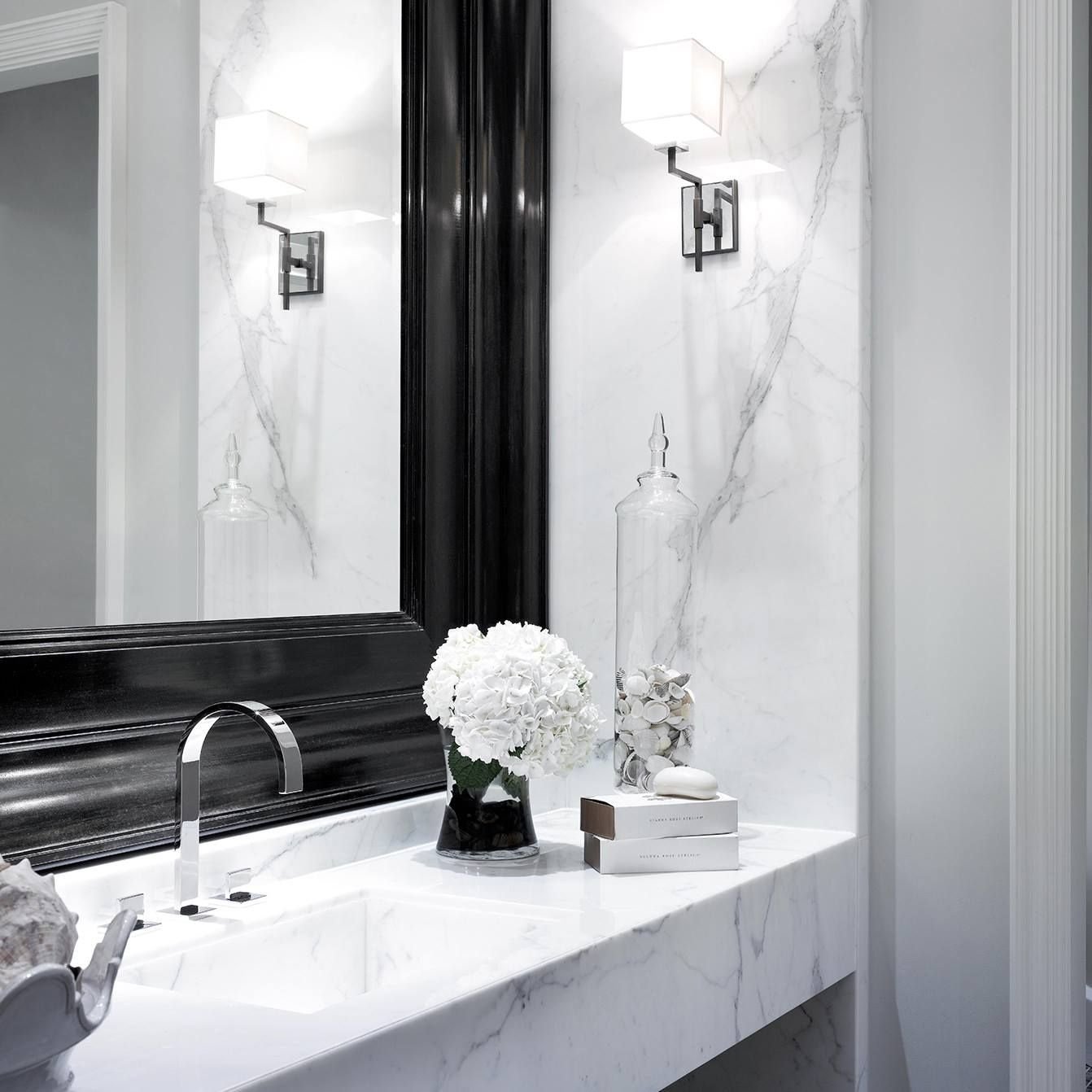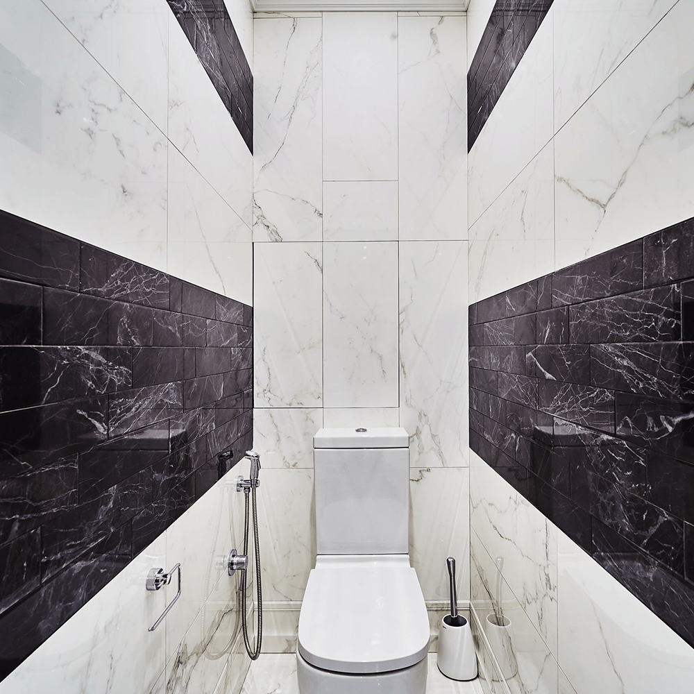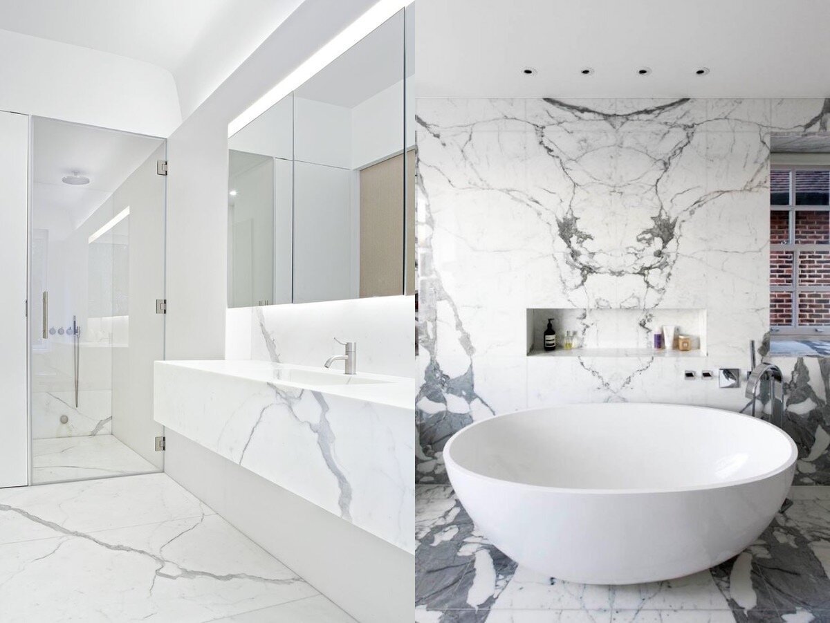 Ванная комната мраморная плитка белая с черным