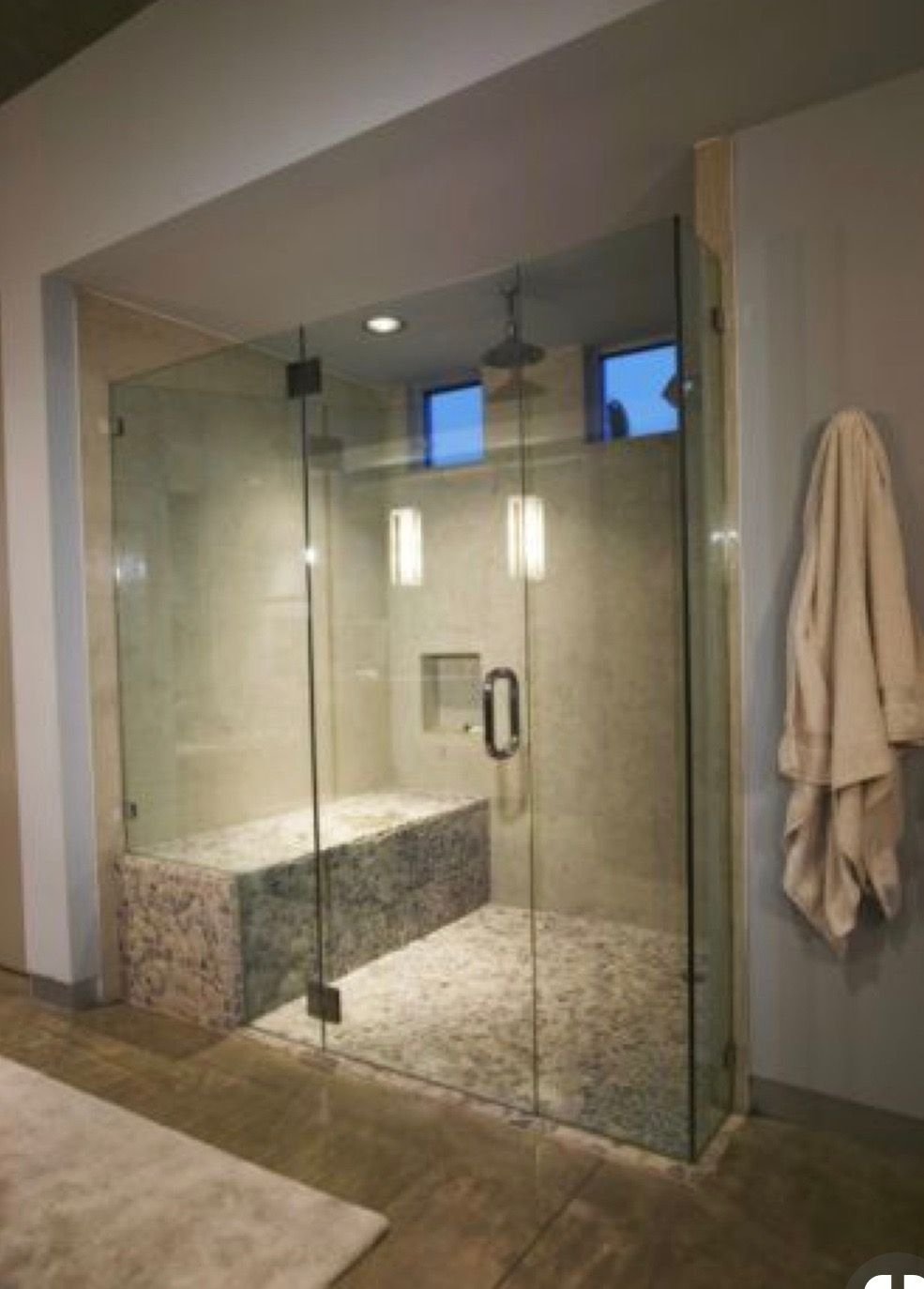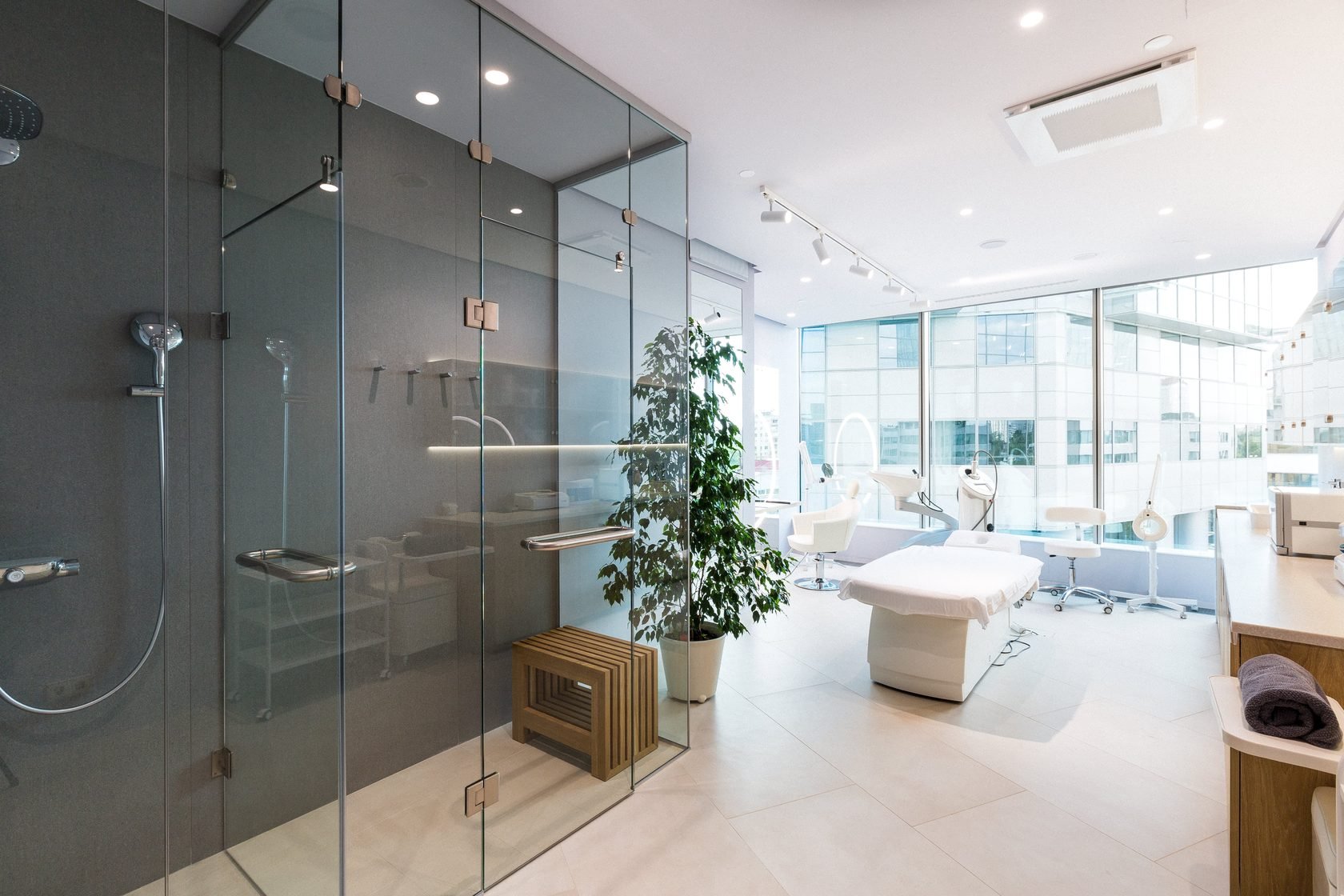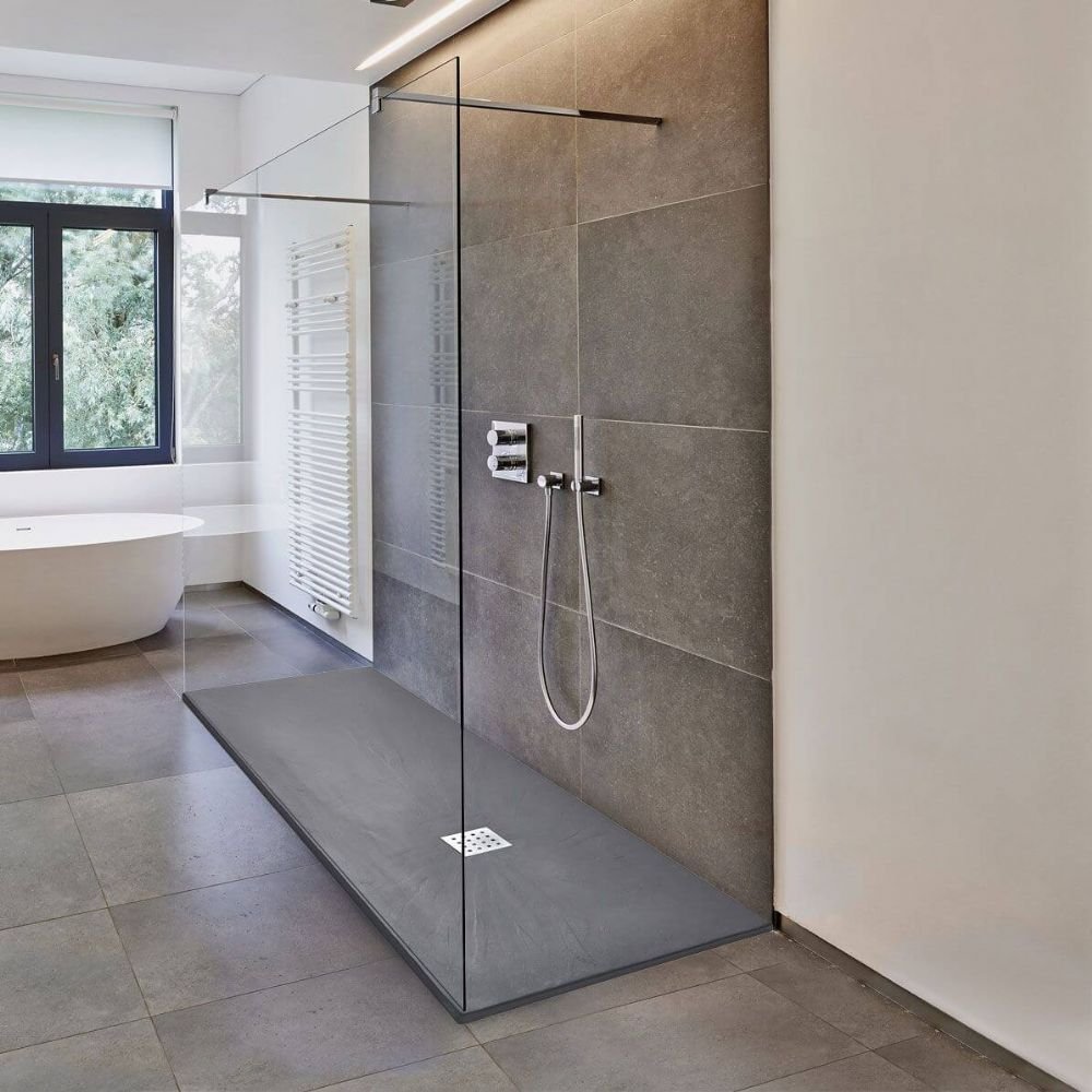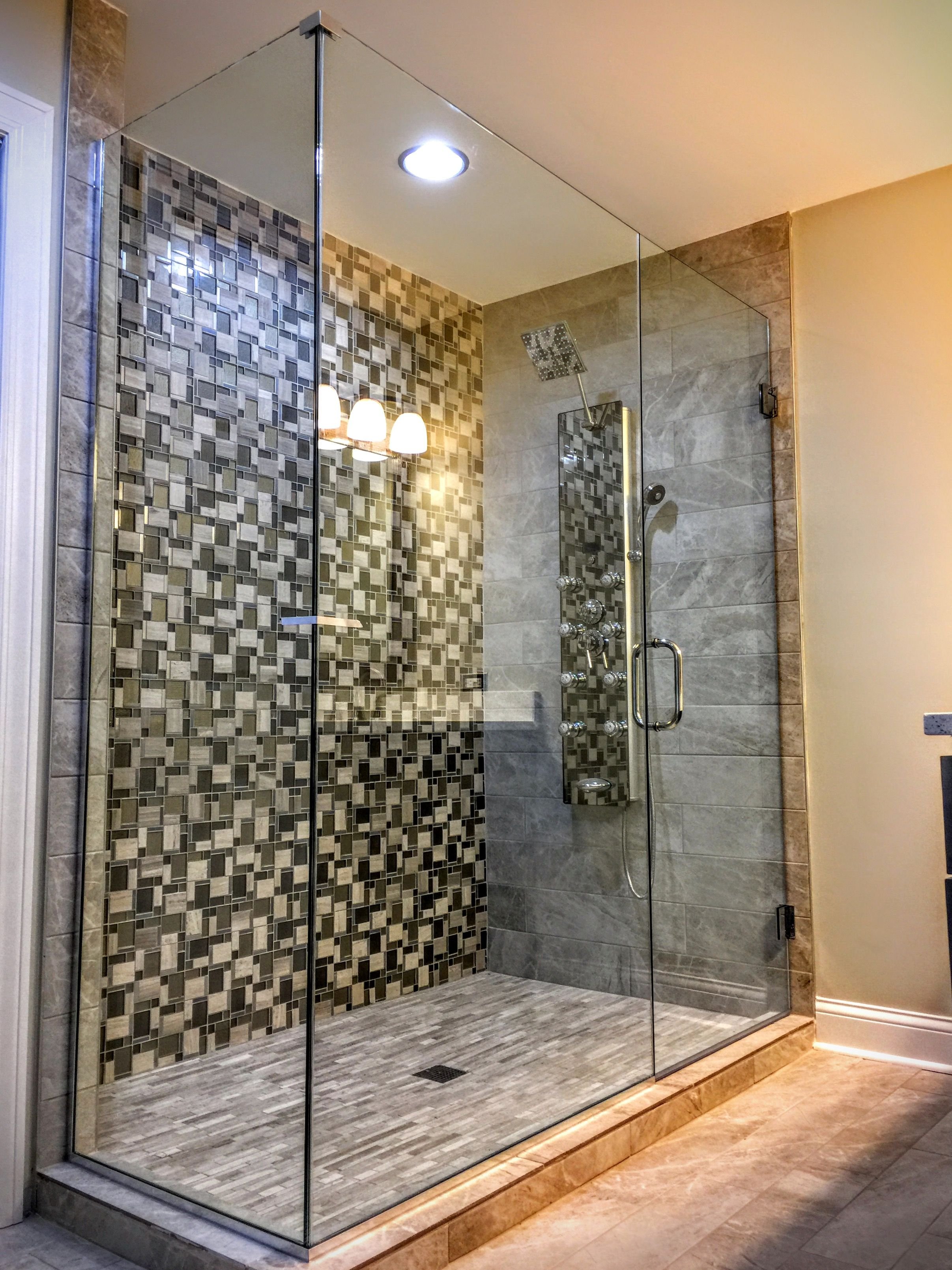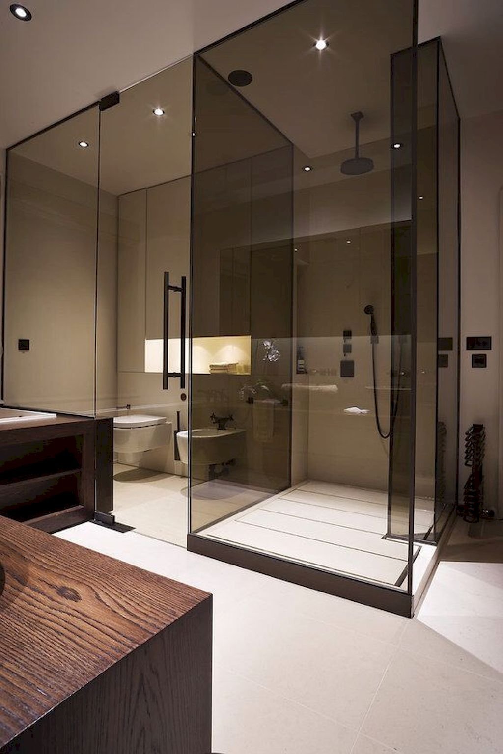 Интерьер ванной комнаты с душевой кабиной и ванной