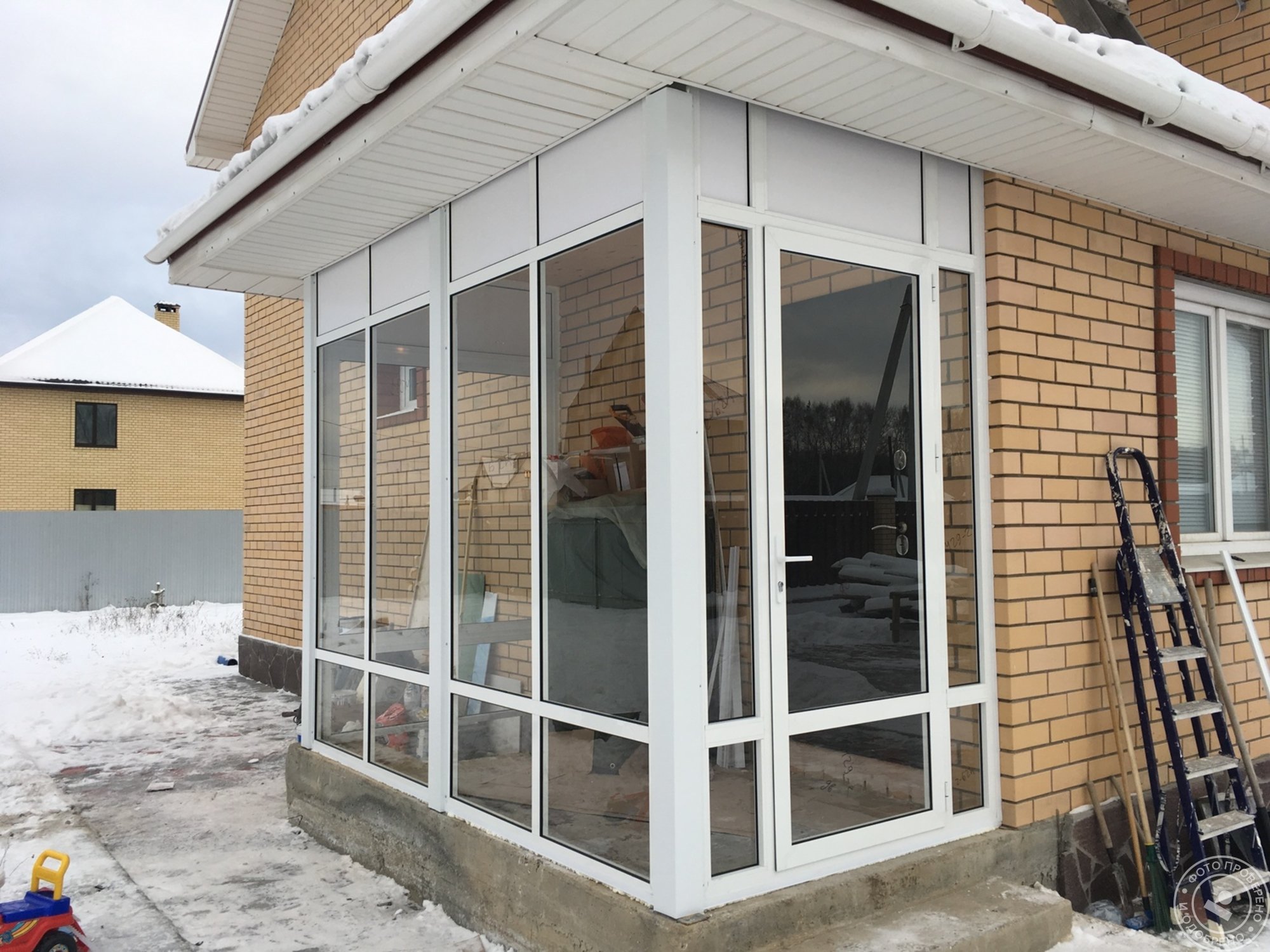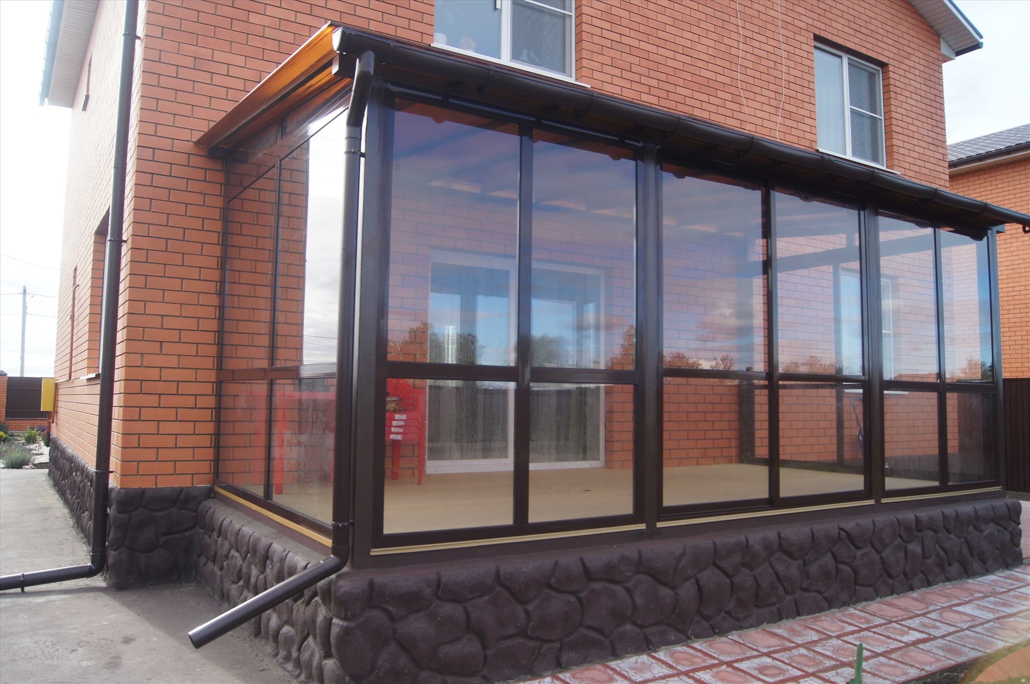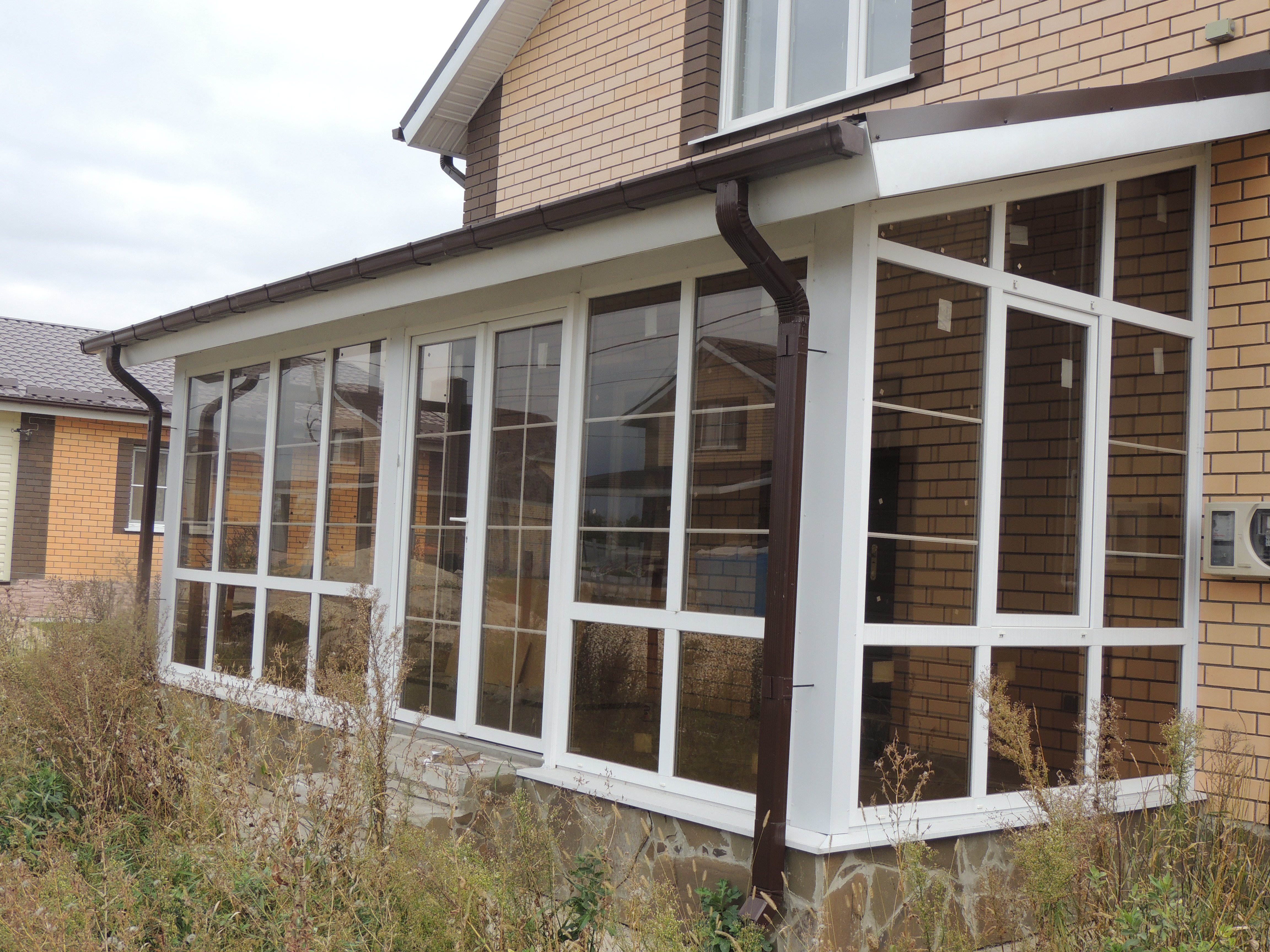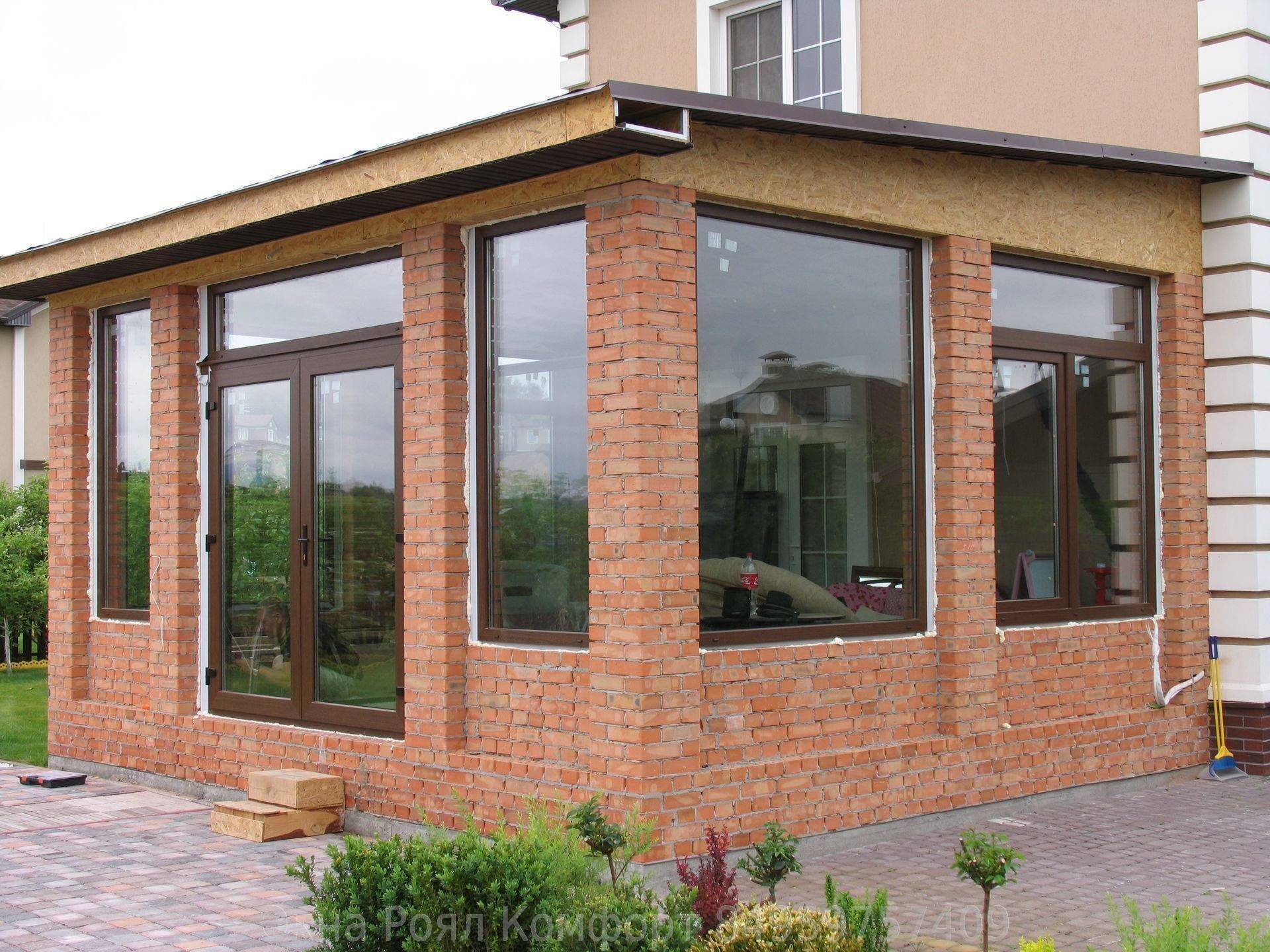 Остекленная веранда из кирпича