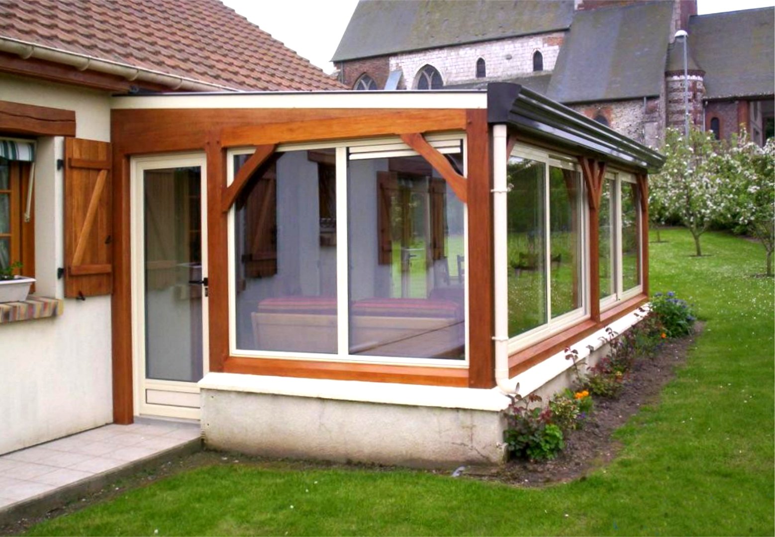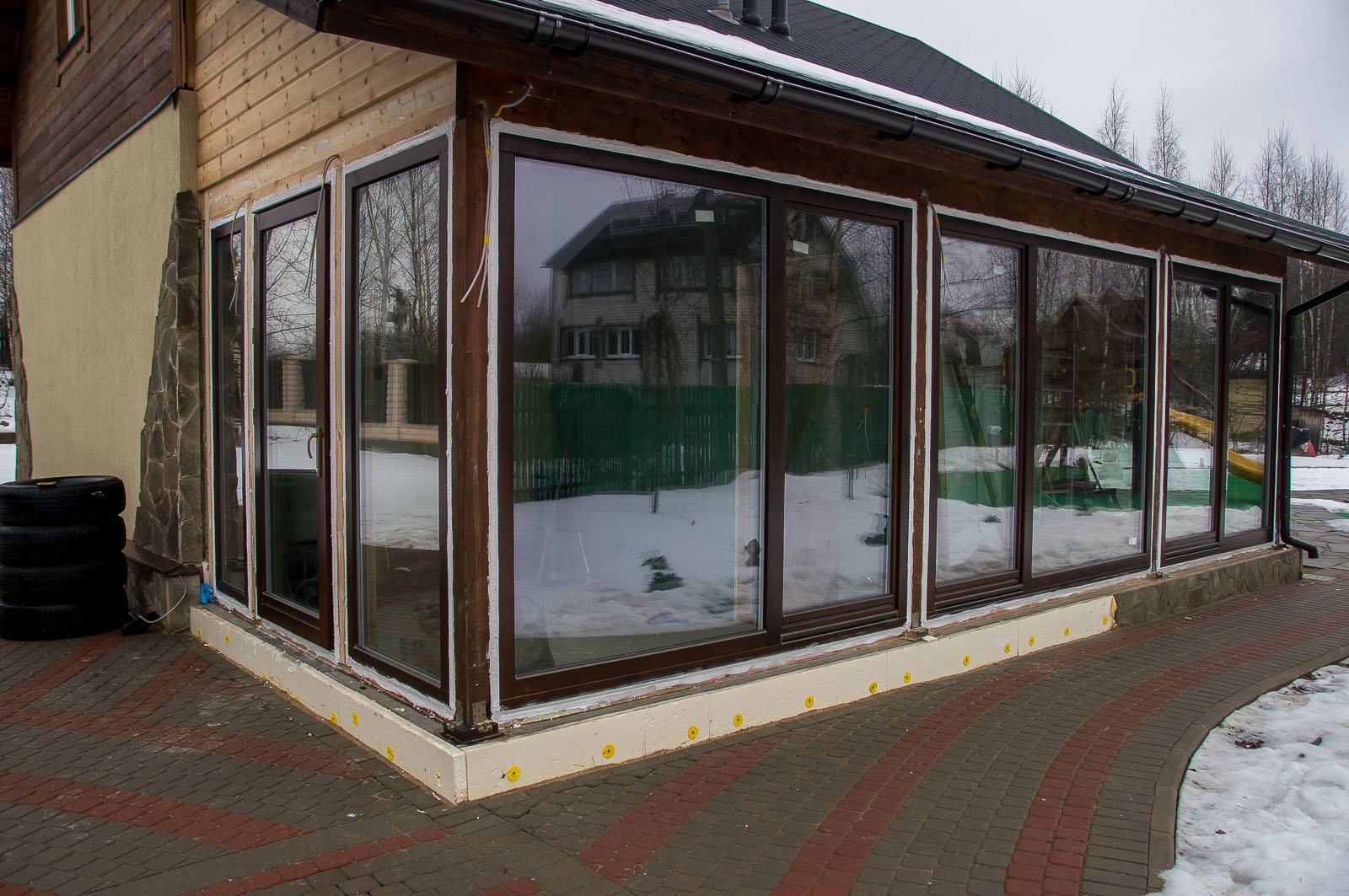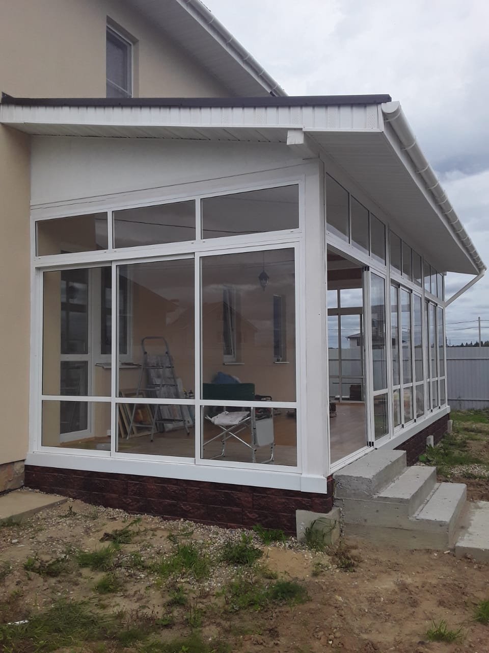 Веранда с большими окнами пристроенная к дому