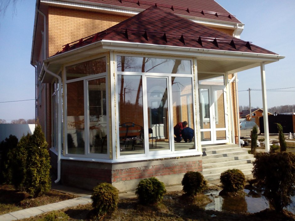 Веранда из пластиковых окон пристроенная к дому