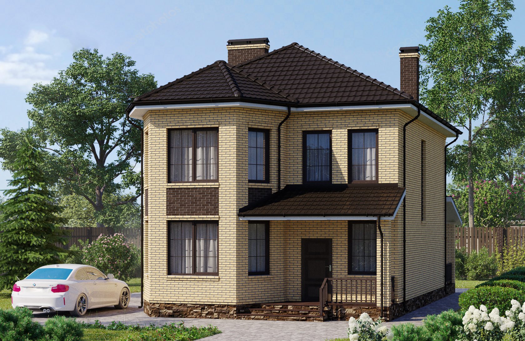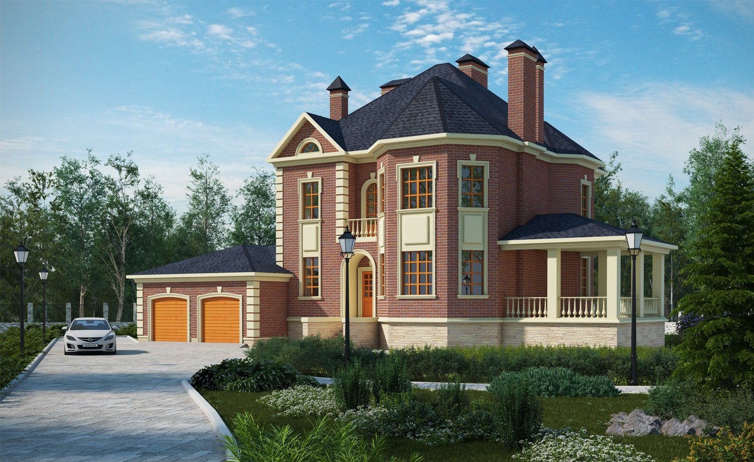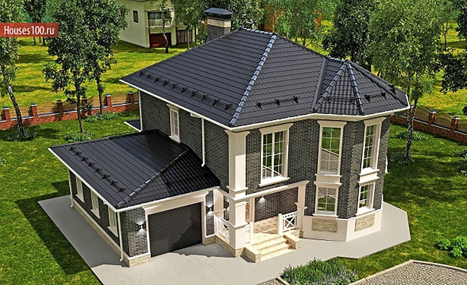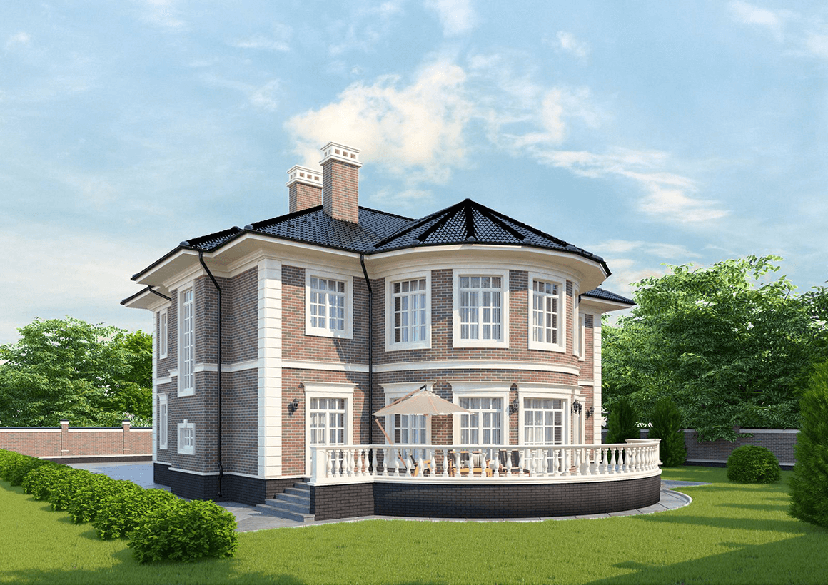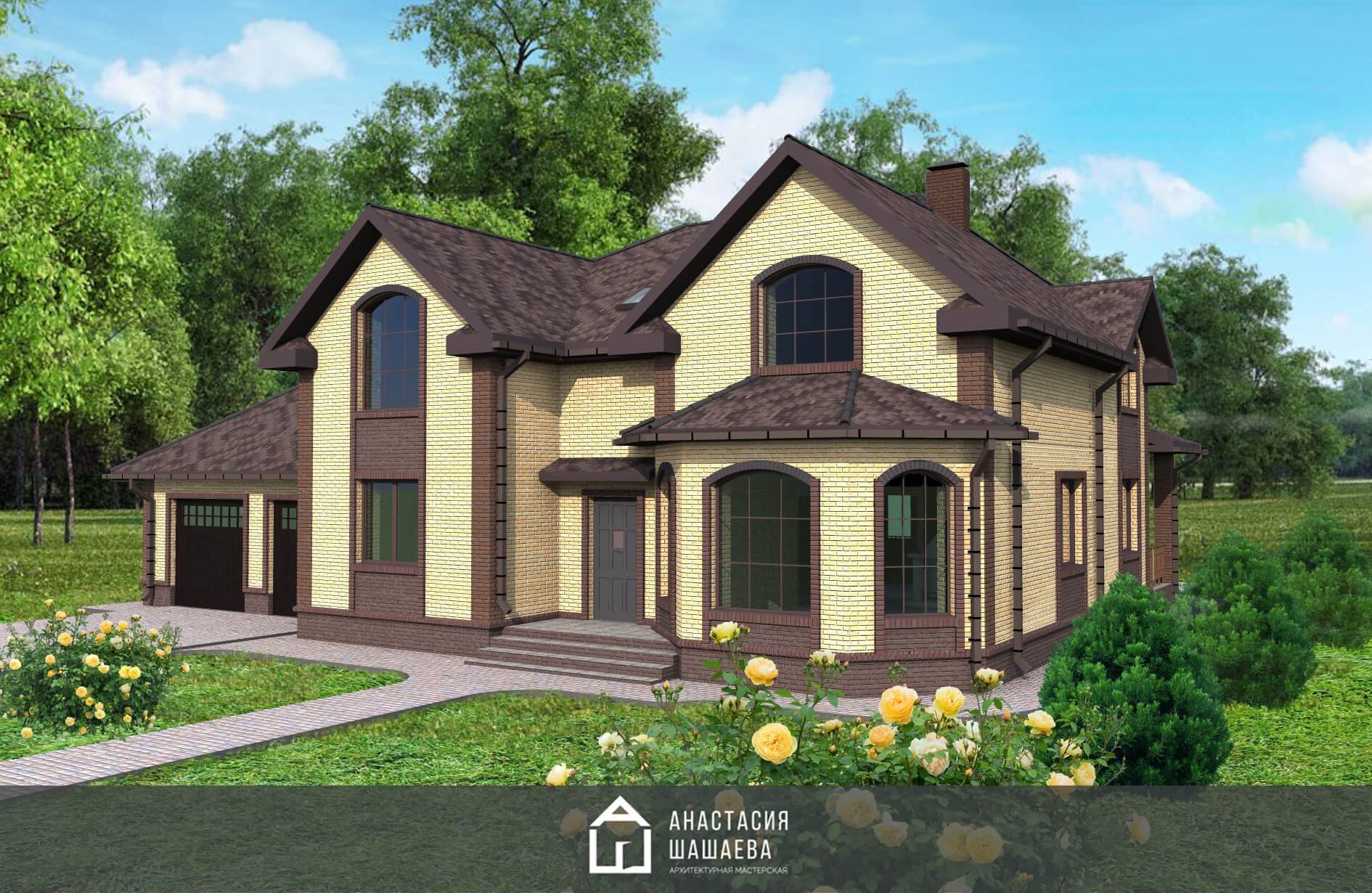 Кирпичный дом с эркером и гаражом