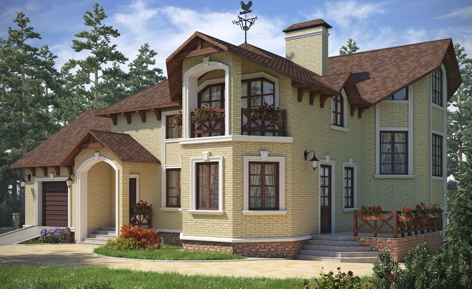 Дом с эркером и гаражом с мансардой