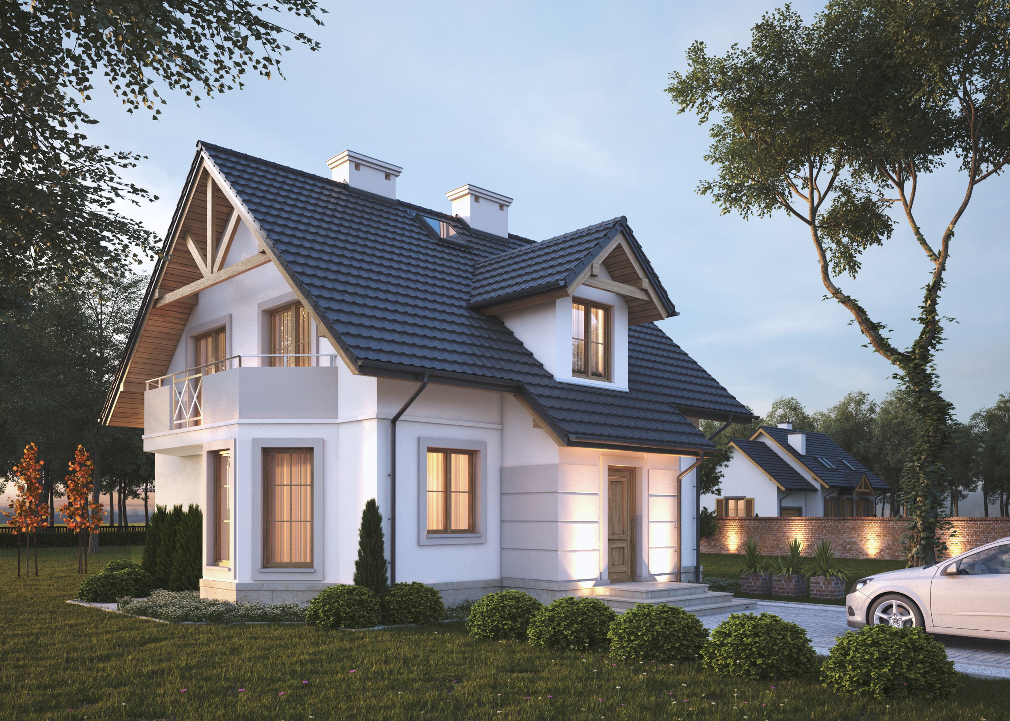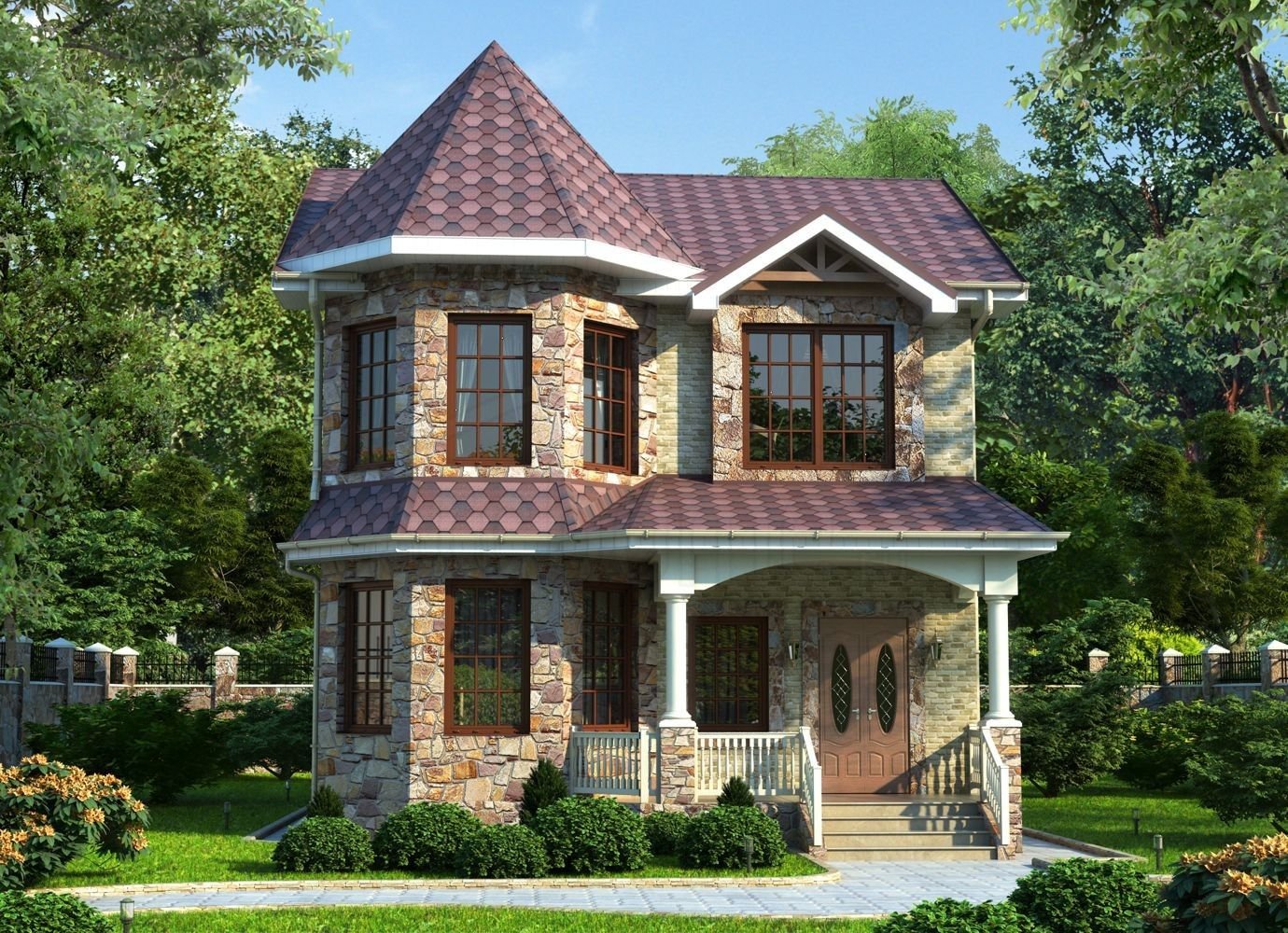 Красивые дома с мансардой и балконом