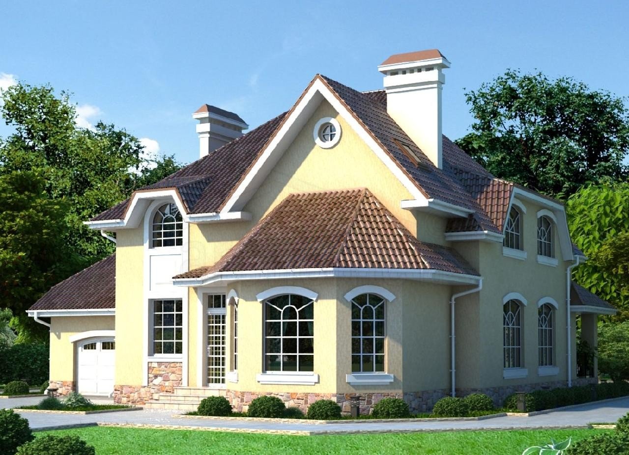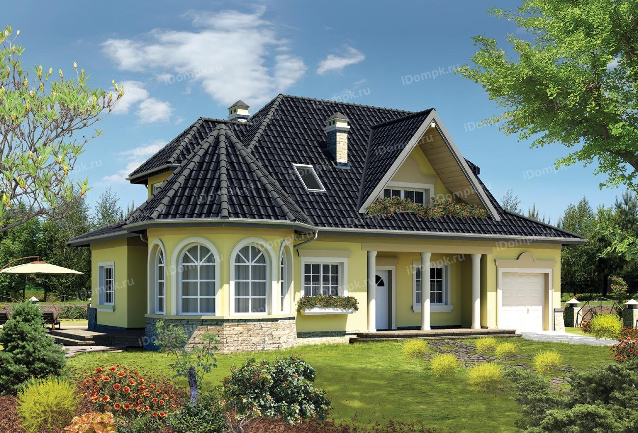 Дом с мансардой эркером и гаражом проекты