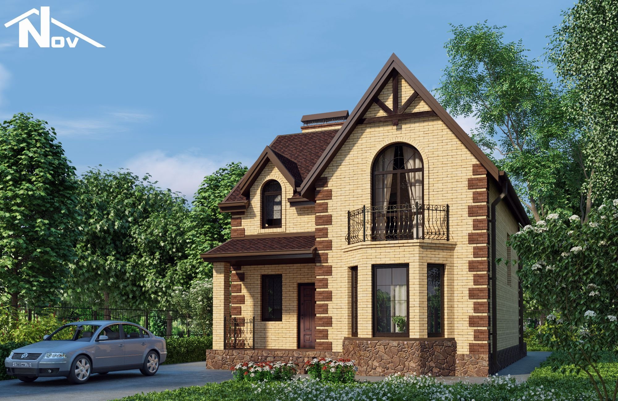 Дом с мансардой и балконом
