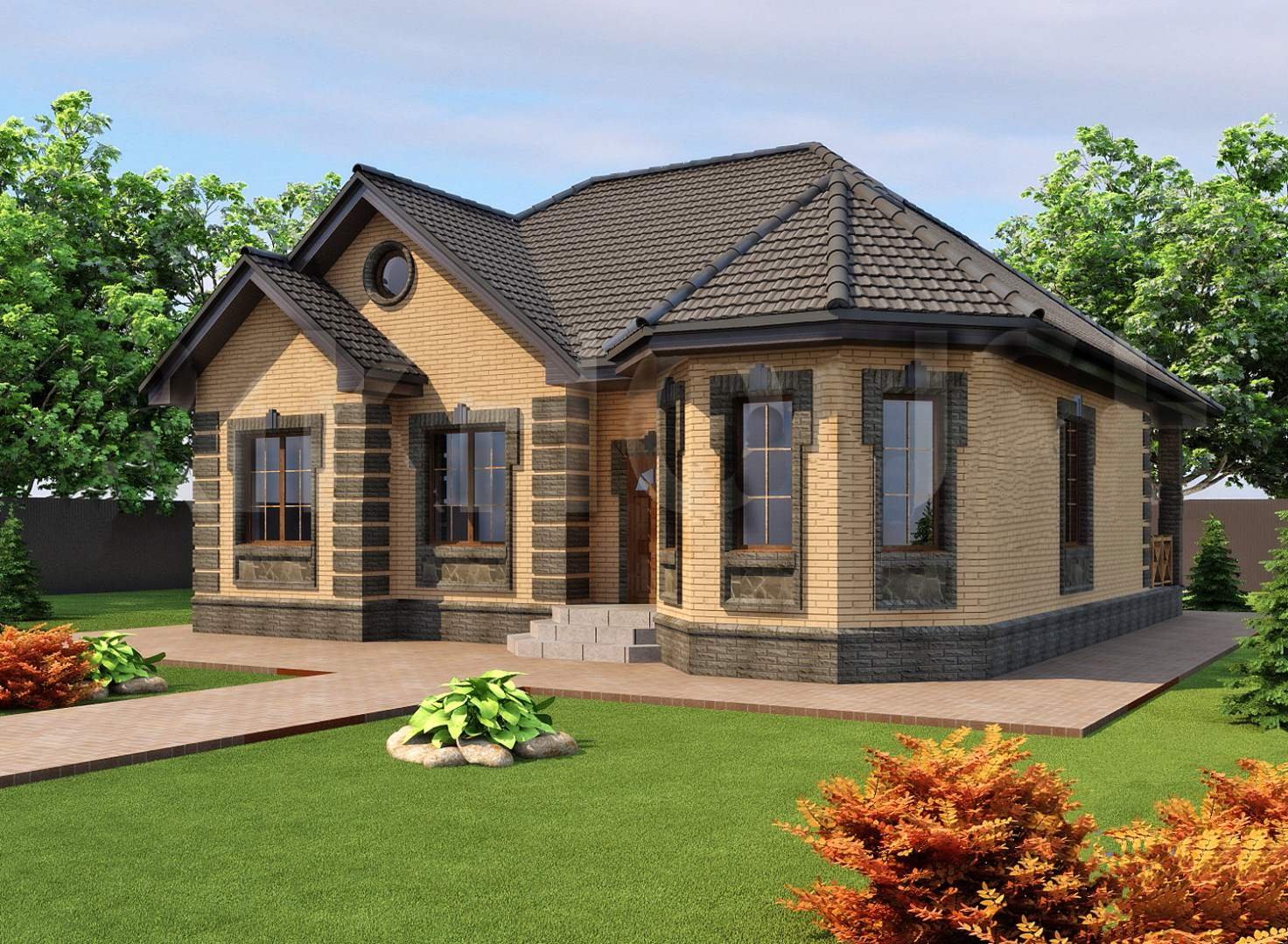 Одноэтажный дом с эркером
