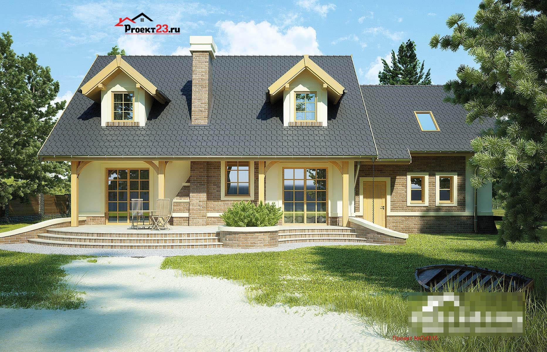 Дом с мансардой эркером и террасой